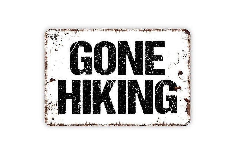 (Aluminum metal) Gone Hiking Sign Metal Sign Farmhouse Contemporary Modern Wall Metal Sign Size: 16 x 12 Inch