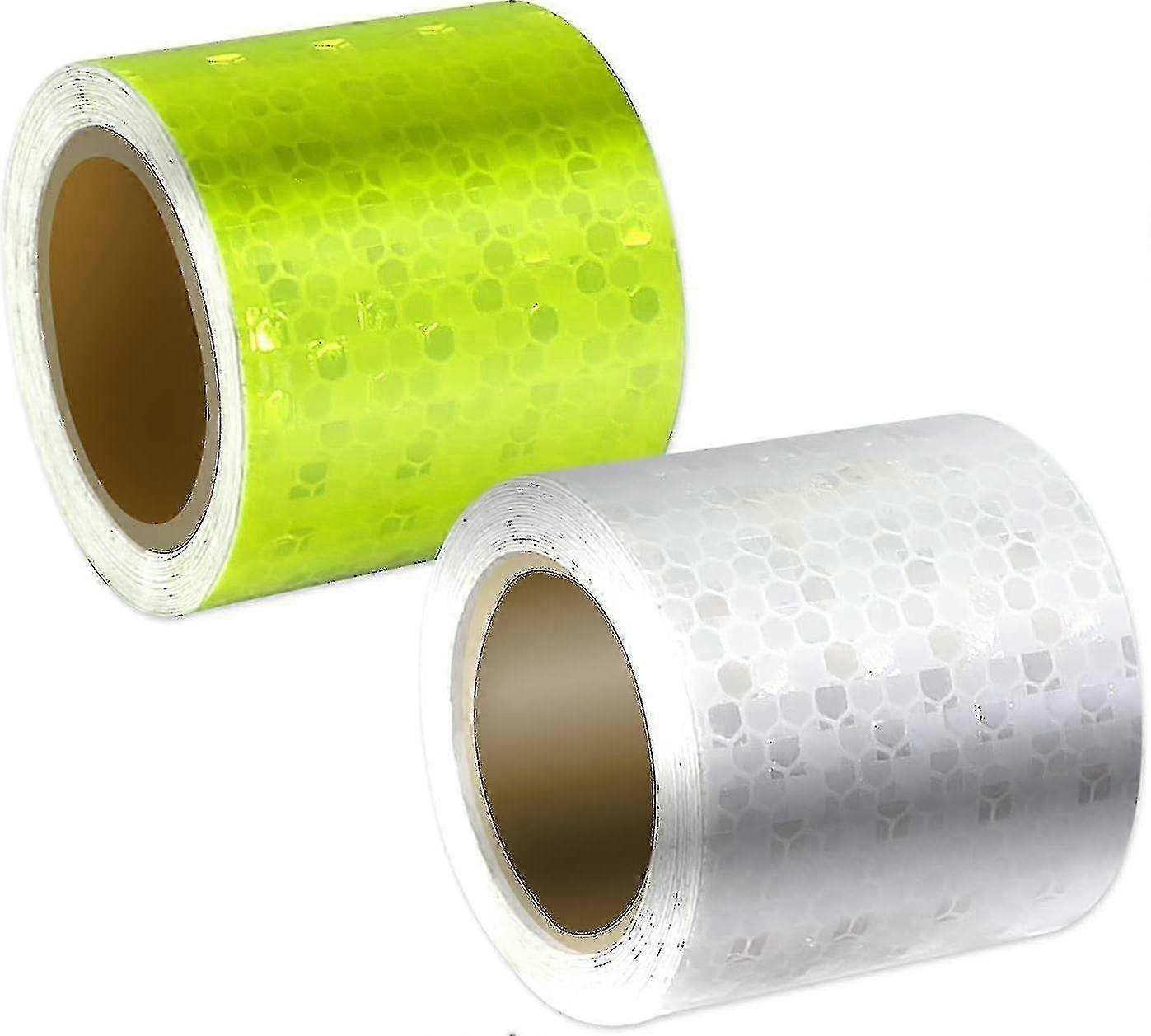 VALUE PACKAGE: 118in / 3m long and 2in / 5cm wide, 2 rolls with 2 different colors reflective tapes, white yellow. Enough to meet your different requirements in daily life, great for marking or as a safety reflection. STRONG VISCOSITY: Made of industrial premium glue, which has durable and strong adhesion, suitable for all weather use. No need to worry about curling. In order to avoid affecting the adhesiveness and service life of the tape, please make sure the surface of the object being pasted is dry, oil-free and dust-free before use. ULTRA REFLECTIVE: Compared with ordinary one, these reflective tape are made of PVC material with reflective sheets, which are not easy to fade in the sun or heavy rain. It helps to raise the awareness of dangerous areas to ensure people's safety, and enjoy longer usage time. SMOOTH SURFACE: These reflective tape surface composed of hexagonal honeycomb pattern has strong 3D effect and is not easy to accumulate dust, which can more clearly reflect the outline of the car. SAFTY FUNCTION: reflective tape plays a warning safety role for emergency vehicles, motorbike, bike, hardhats, ships, parking, road markings, transport facilities, etc.