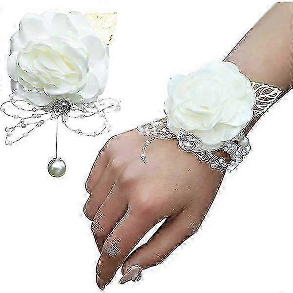 About this item: HIGH-QUALITY MATERIALSStunning vintage wedding corsages are handmade from high-quality fabrics and satin that will never fade. The white rayon flowers are paired with artificial pearls to fit most wrists. Corsages can also be worn on clothing. Beautiful DesignThe corsage and boutonniere set features a faux pearl bracelet. It's long enough to fit any wrist. Roses, artificial flowers, faux leaves, and ribbons coordinate to add more elegance and romance to your wedding. Easy to UseThe wrist flower is strung with beads into a round bracelet, making it very comfortable to wear on the wrist. Easy on and off, saving time and looking beautiful. A needle and clip on the back of the corsage make it easy to use. Realistic AppearanceGolden leaves with white flowers, a unique wrist corsage, elegant design, and very fashionable. The flowers are so lifelike that it's hard to tell they're not real without a close look. Both the wristband and corsage are particularly delicate in appearance. Applicable OccasionsWhite wristband can be used for the bride, bridesmaid wrist corsage, mother, grandmother, flower girl hand corsage at weddings or other events. The corsage is suitable for weddings, proms, cocktail parties, anniversaries, engagements, ceremonies, birthdays, formal dinners, homecoming parties, and other occasions.