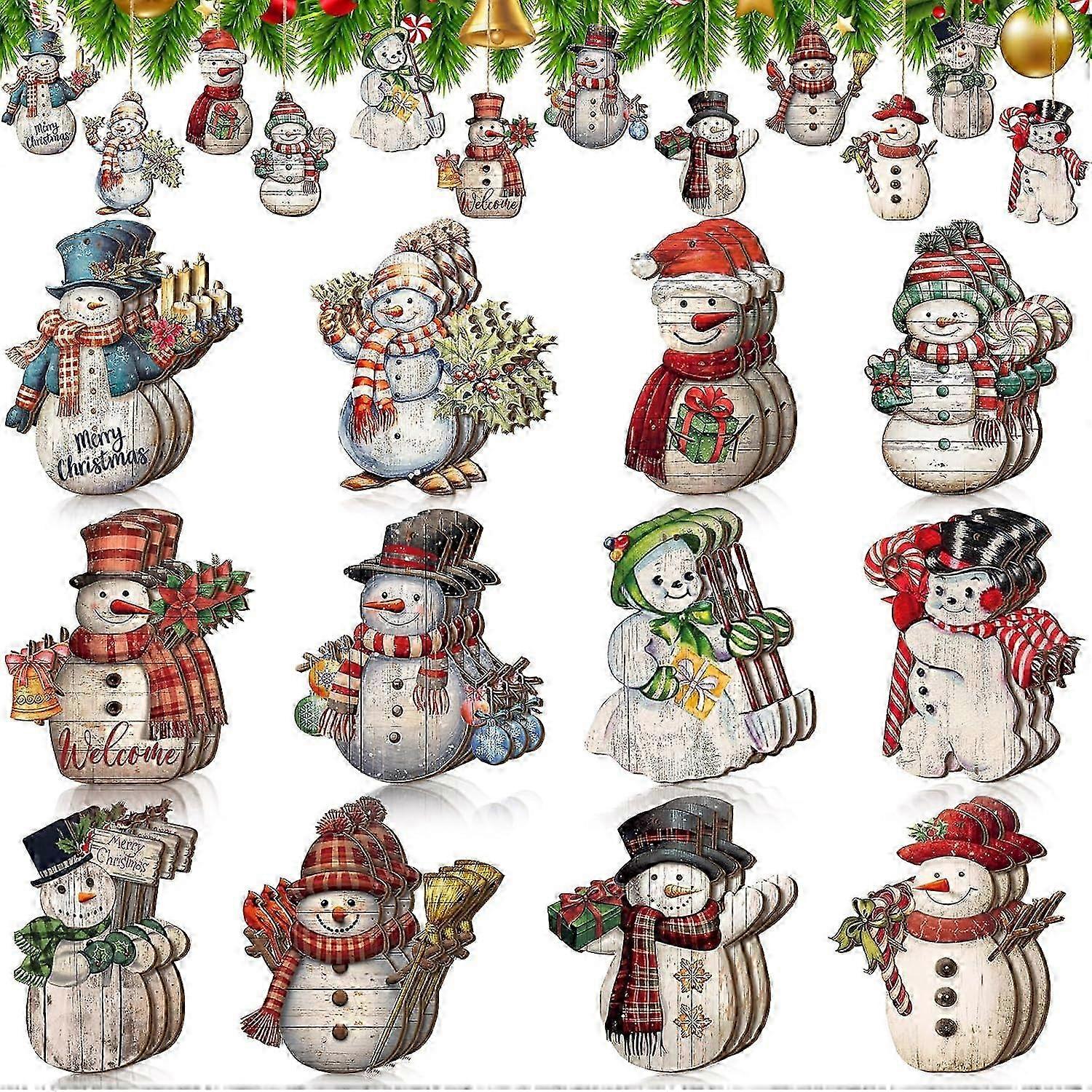 36pcs Christmas Wooden Ornaments Wooden Hangings Christmas Tree Decorations Rustic Retro Christmas Ornaments (Snowman) SZRH
