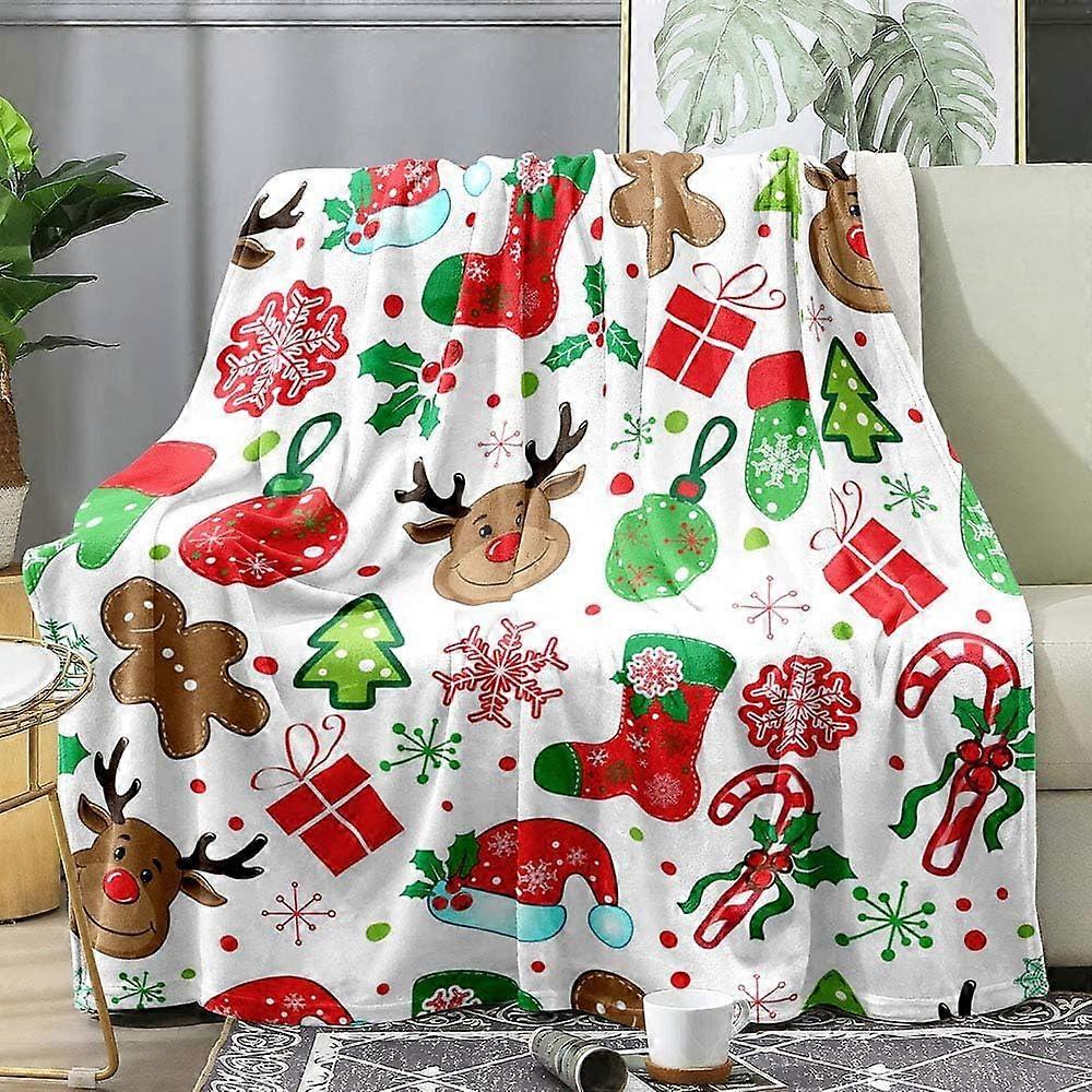 Cozy Soft Christmas Throw Blanket 60"x80" - Cute Reindeer Snowflake Gingerbread Design, Fuzzy Flannel Fleece for Bed, Couch, Sofa