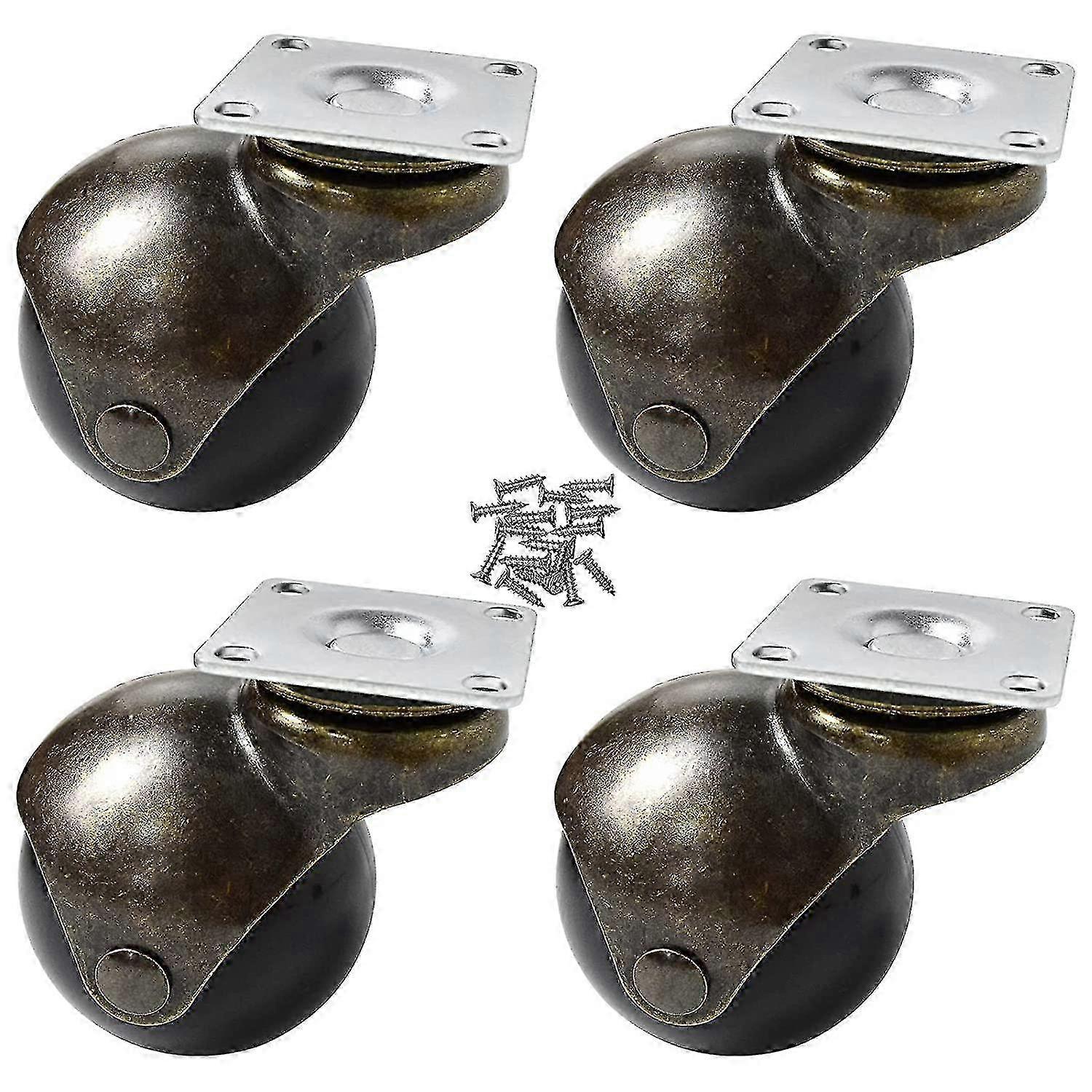 4 Pcs Antique Furniture Caster Wheels, 1.5 Inch Ball Casters Plate Casters, Vintage Swivel Caster Ball Wheels With Top Mounting Pl SZRH