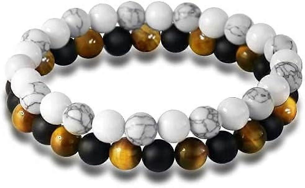 Couple Bracelets Beeds 8mm Natural Tiger's Eye Stone Matte Agate White Turquoise Natural White Stone Beaded Men's and Women's Bracelets