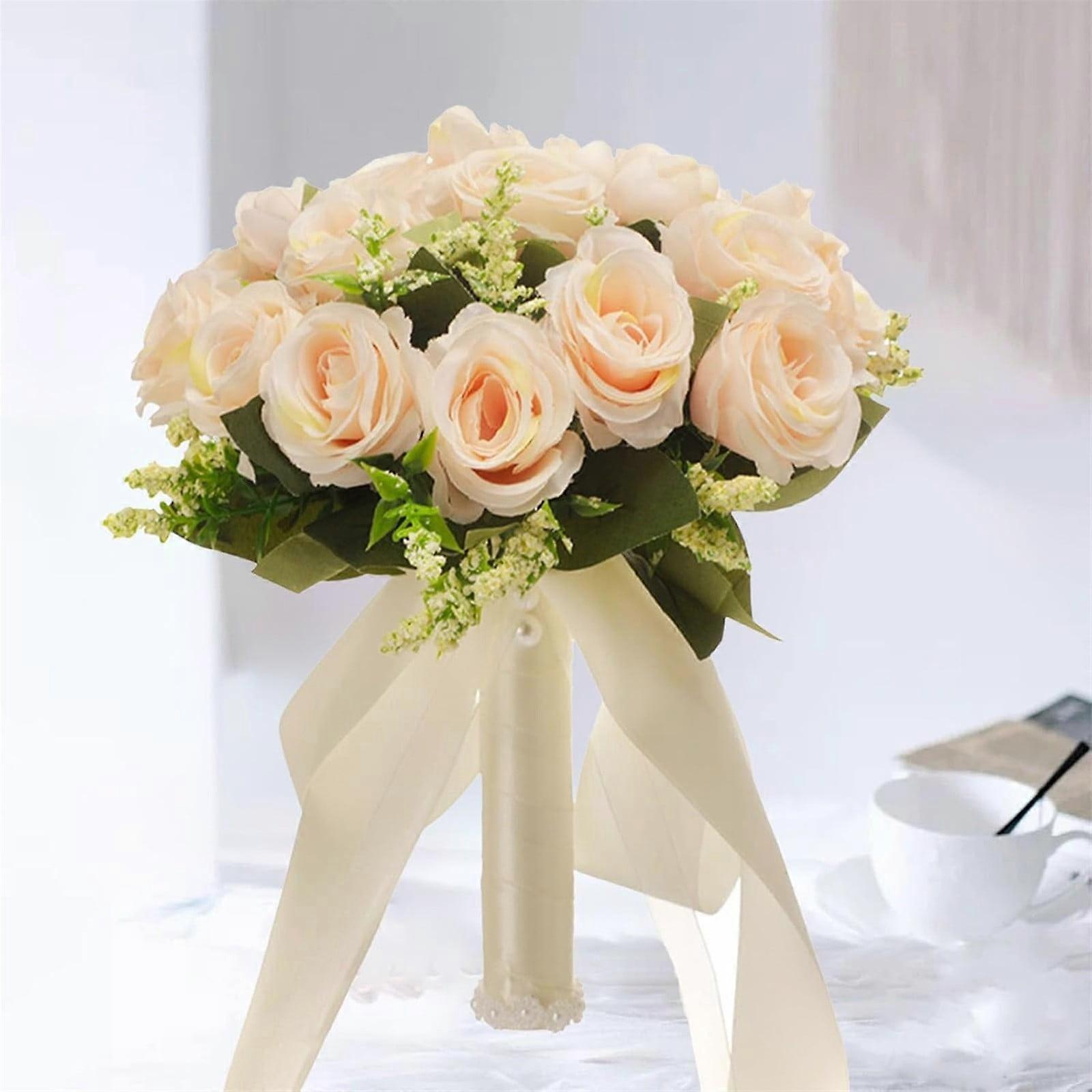 Wedding Bouquets For Bride Wedding Bridesmaid Bouquets Rose Flower Bouquets In Champagne White For Bridal Tossing And Valentine's Day Bouquets