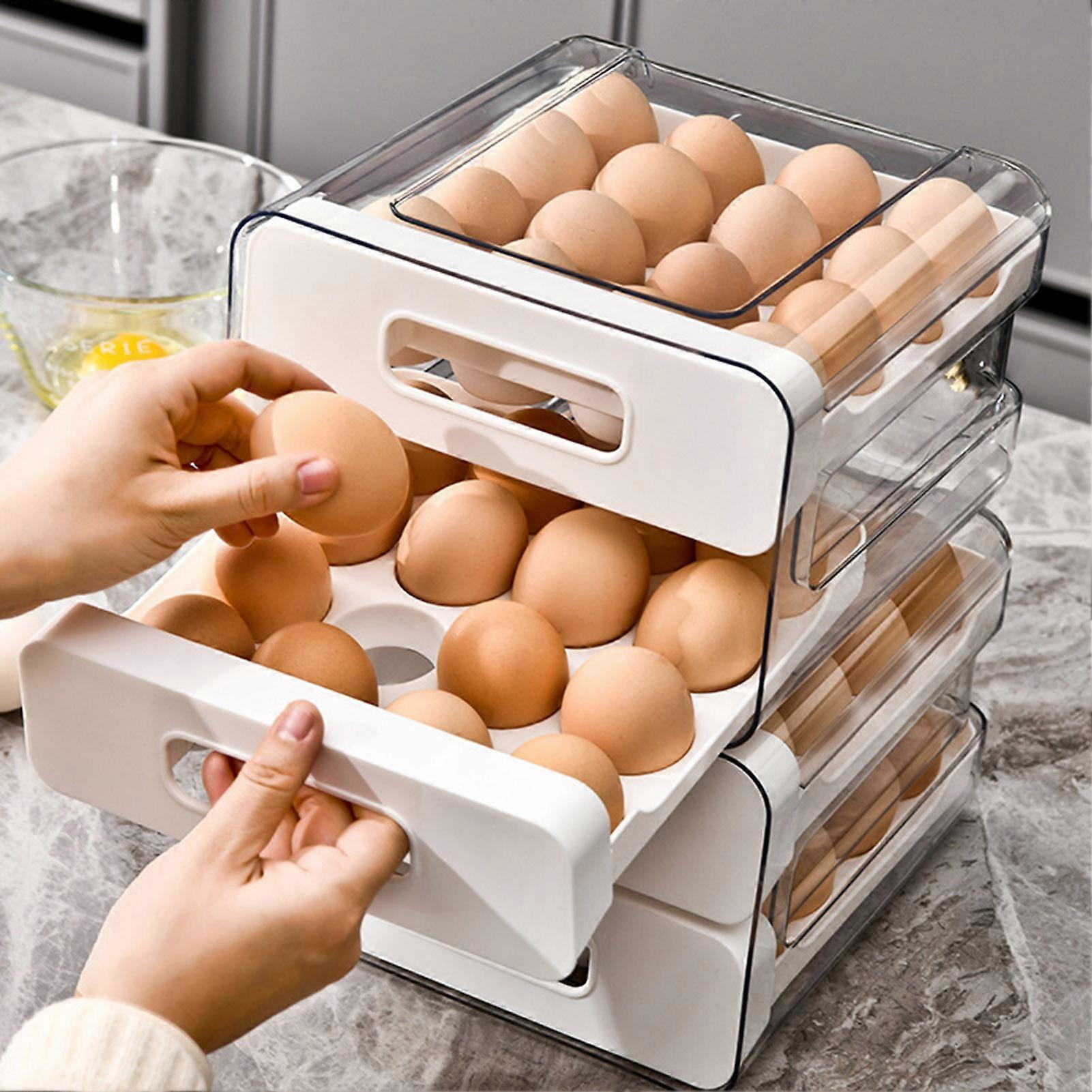 SUSUchens Refrigerator Storage Box Egg Container with Lid Large Capacity Dual Layer Transparent Design Stackable Egg Tray Organizer Bin Light Beige