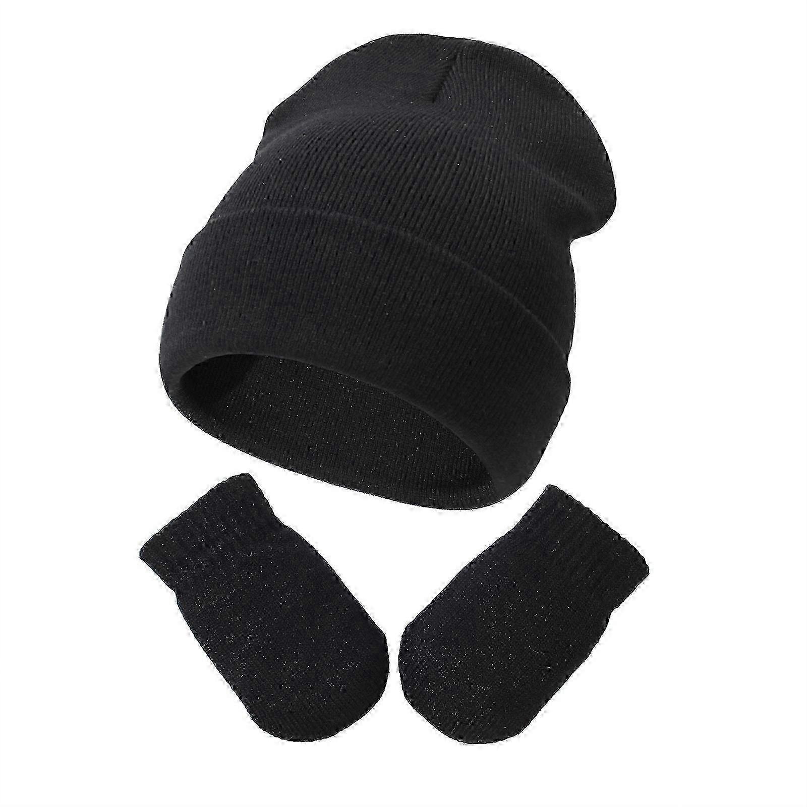 Baby Supplies Winter Hat Gloves Set Solid Color Warm Crochet Knitted Hat Gloves Kit for Infant Toddler Baby Girls Boys White M