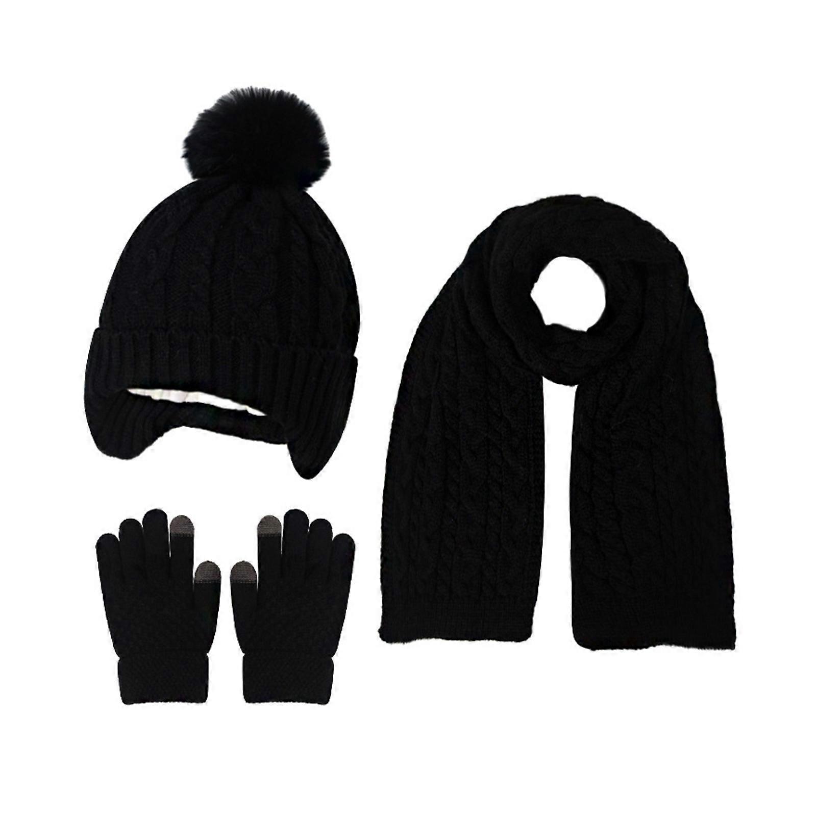 3Pcs/Set Kids Hat Scarf Glove Set Plush Ball Decor Twist Texture Knitting Hat Long Scarf Winter Gloves Set Winter Accessories