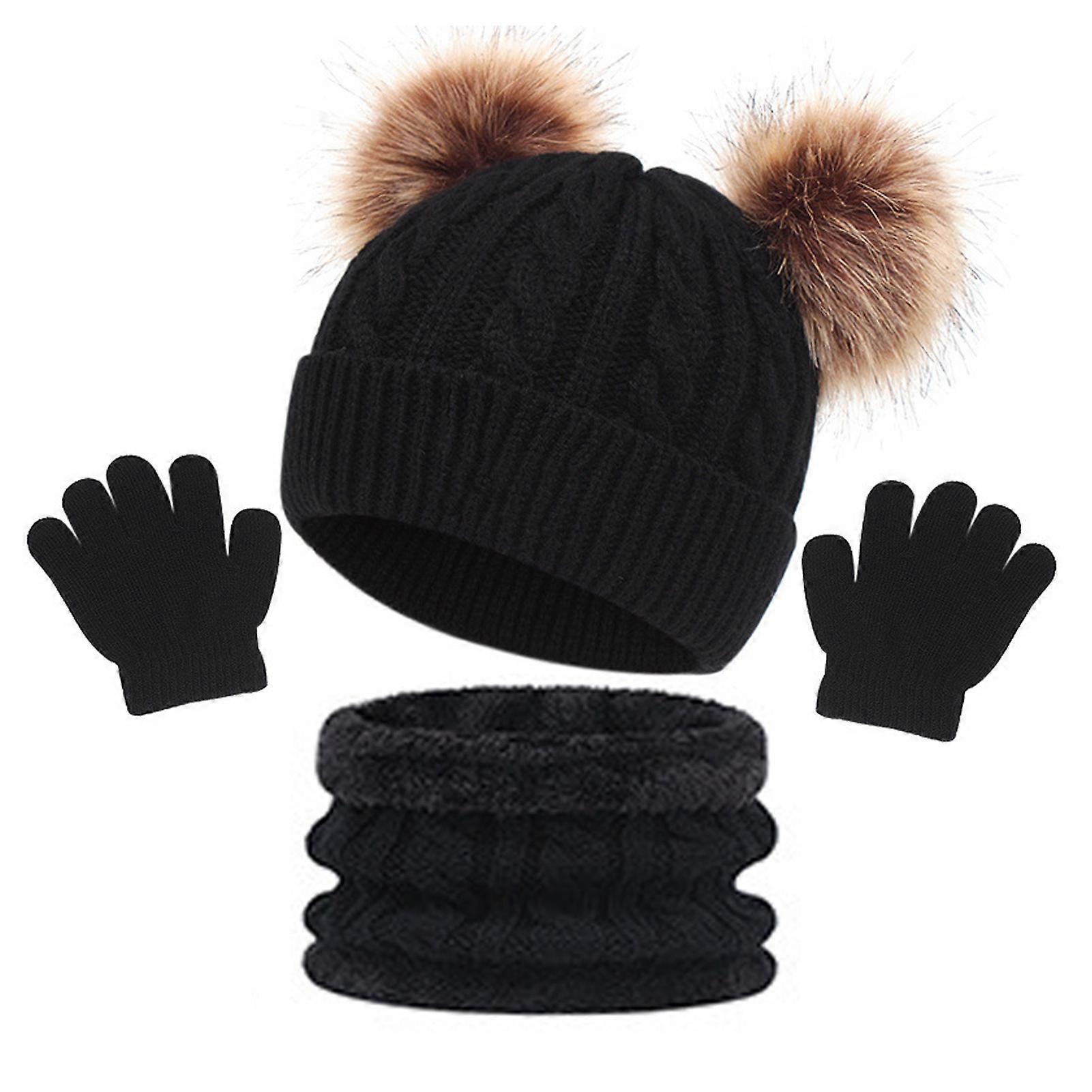 3Pcs/Set Children Hat Scarf Gloves Set Plush Ball Decor Twist Texture Solid Color Knitting Hat Long Scarf Gloves Set