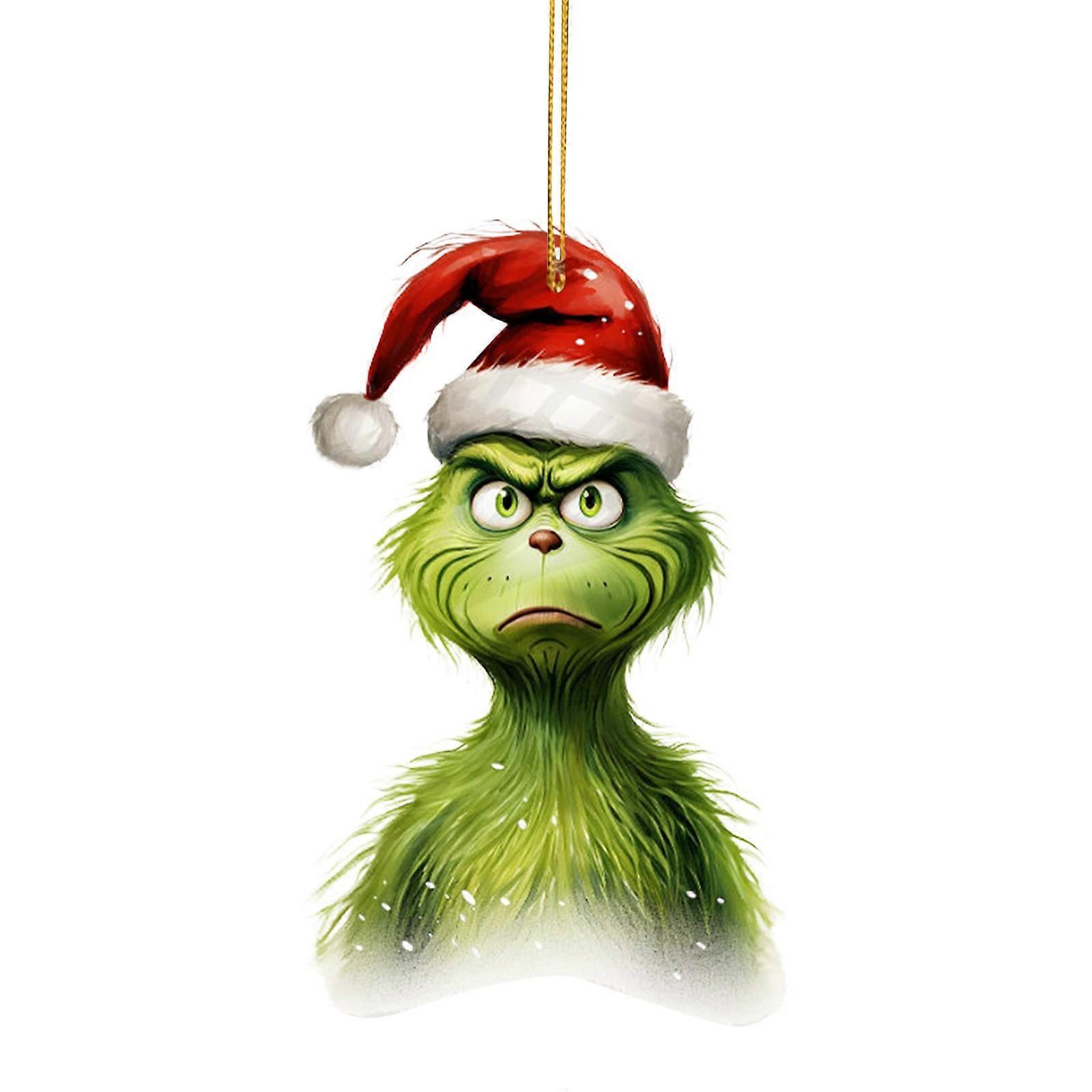 TOFOTL 3.14" Grinch Ornaments, Cartoon Acrylic Green Pendant Holiday Tree Car Accessory for Indoor Outdoor Christmas Decoration