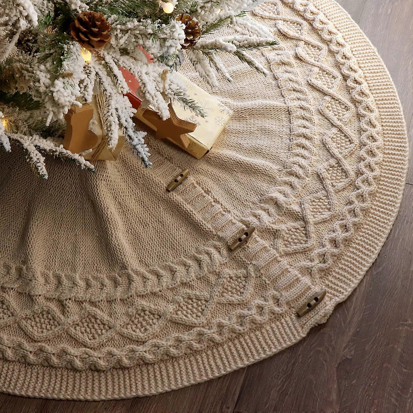 Fnyoxu Christmas Knitted Tree Skirt Knitted Christmas Tree Apron Christmas Decorations
