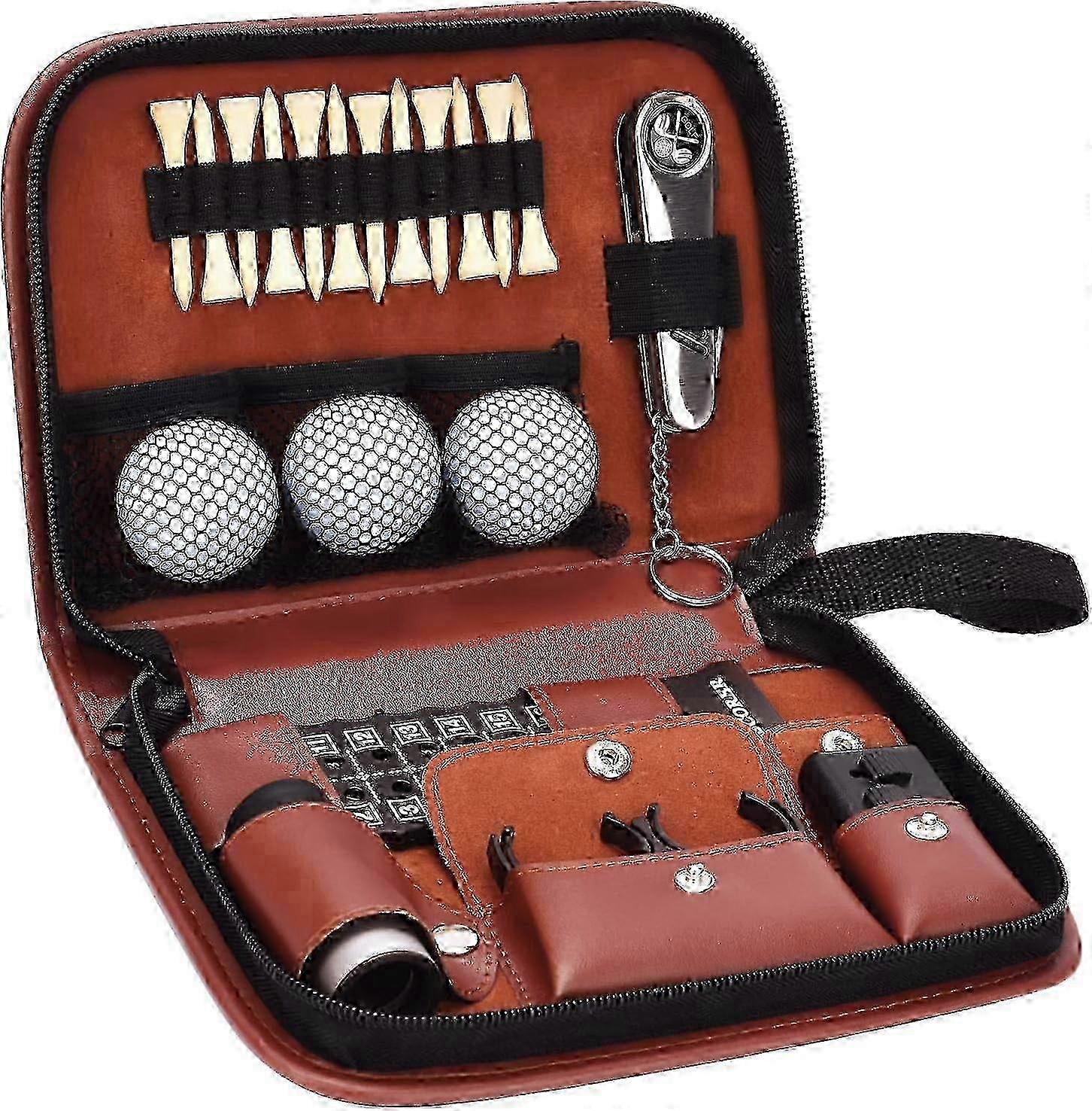Men's and women's golf gifts, suitable for golf accessory sets, can be classified into golf balls, rangefinders, golf ball holders, brushes, multifunctional diving knives, scorers, high-end shell golf clip bags, packaging 1 golf accessory bag - brown - light brown Note: Due to the light and screen setting difference, the item's color may be slightly different from the pictures. Please allow slight dimension difference due to different manual measurement.