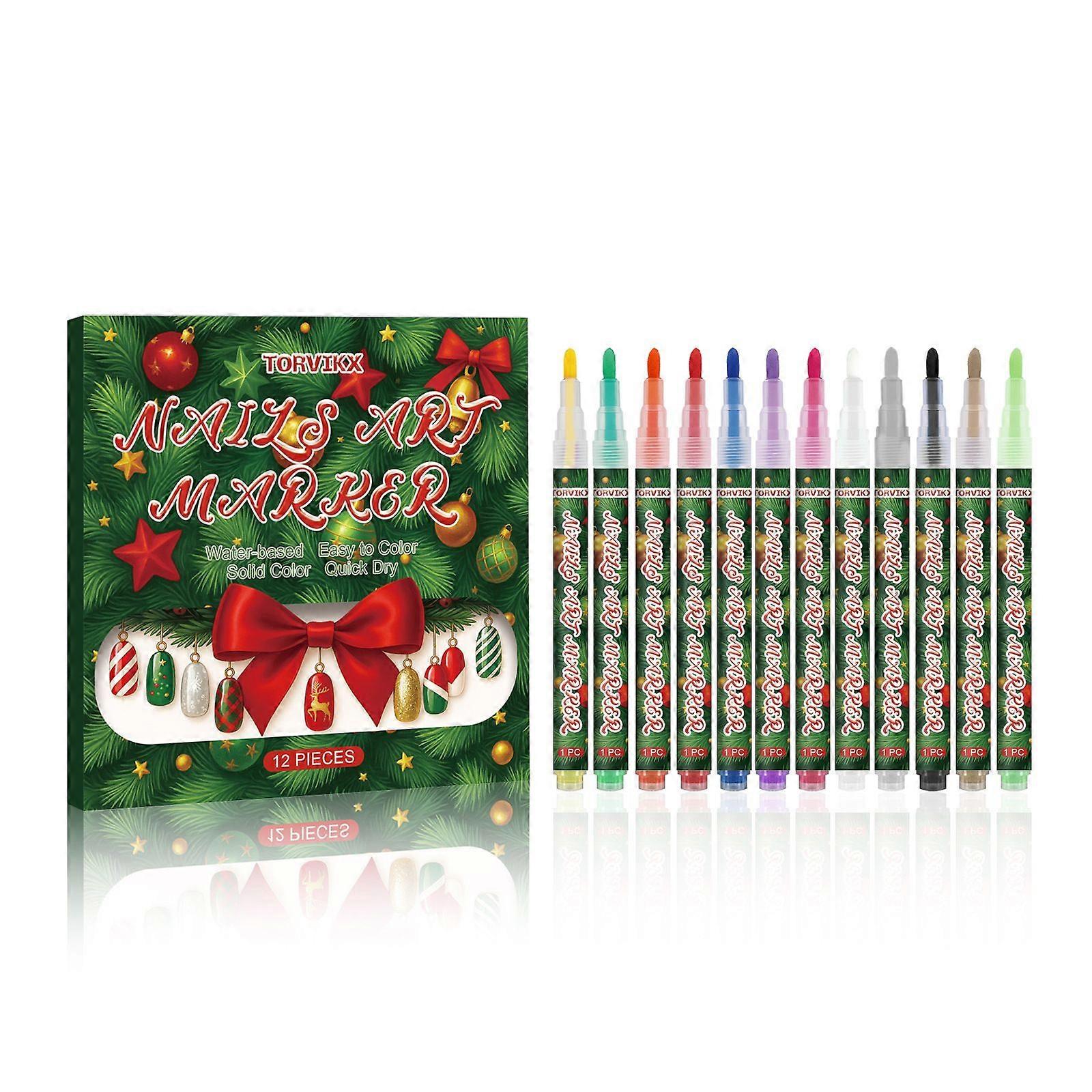 12 Colors Christmas Nail Art Pens Set, Nail Art Markers for Gel Nails, DIY Nail Art Marker Drawing Painting Liner Pen, Nail Art Tools for Graffiti Dot