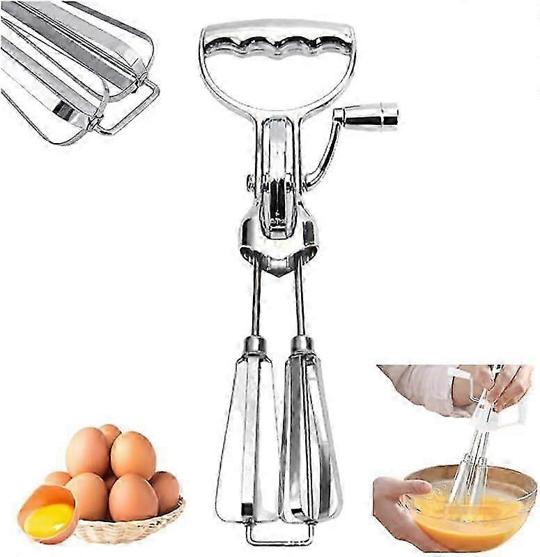 Hand Crank Egg Beaters, 2024 New Handheld Double Head Stainless Steel Rotary Hand Whip Whisk