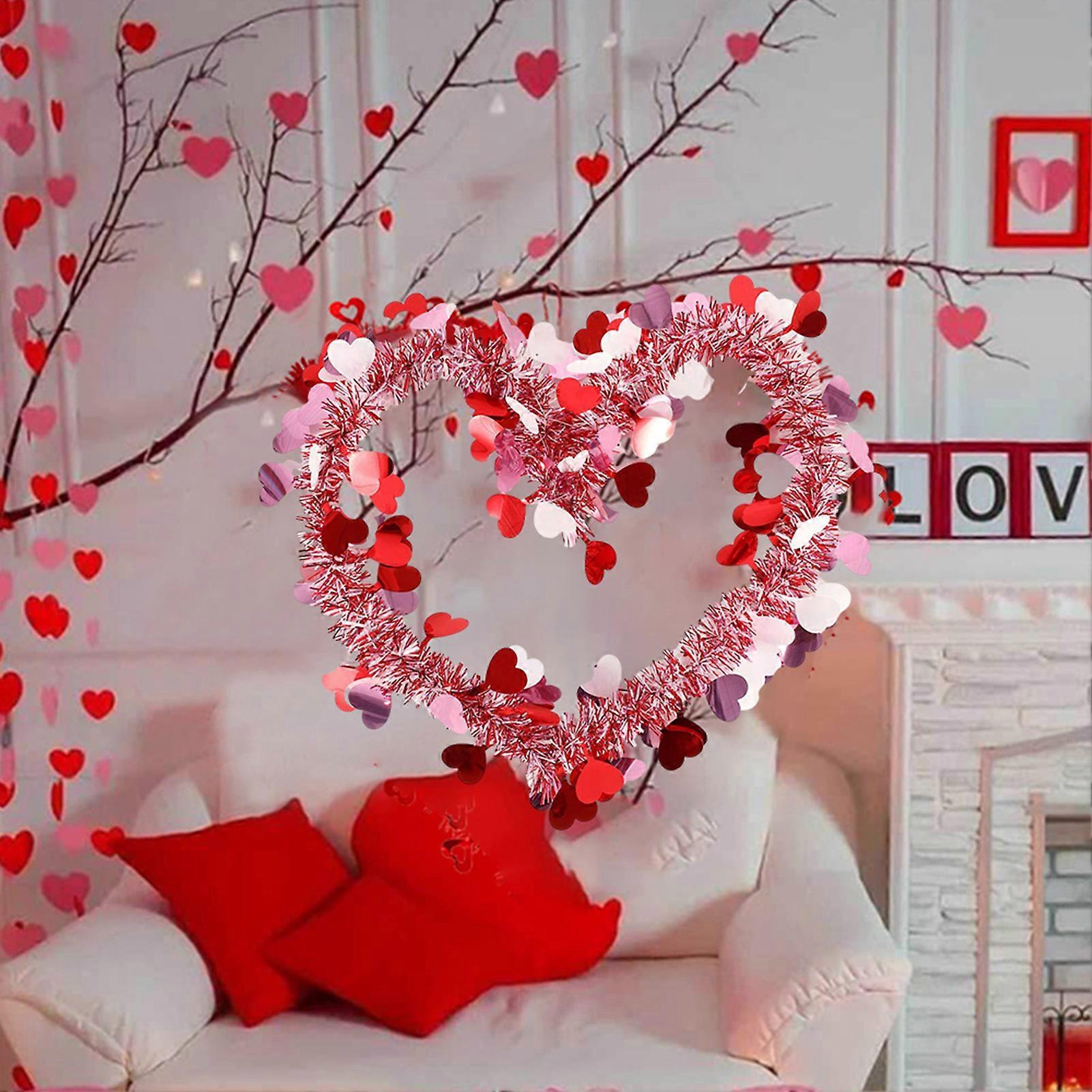 SUSUchens 10 Pcs Heart Tinsel Garland, Colorful Metallic Romantic Decor for Valentine's Day, Wedding, Indoor & Outdoor Use, Hanging Tinsel Style B