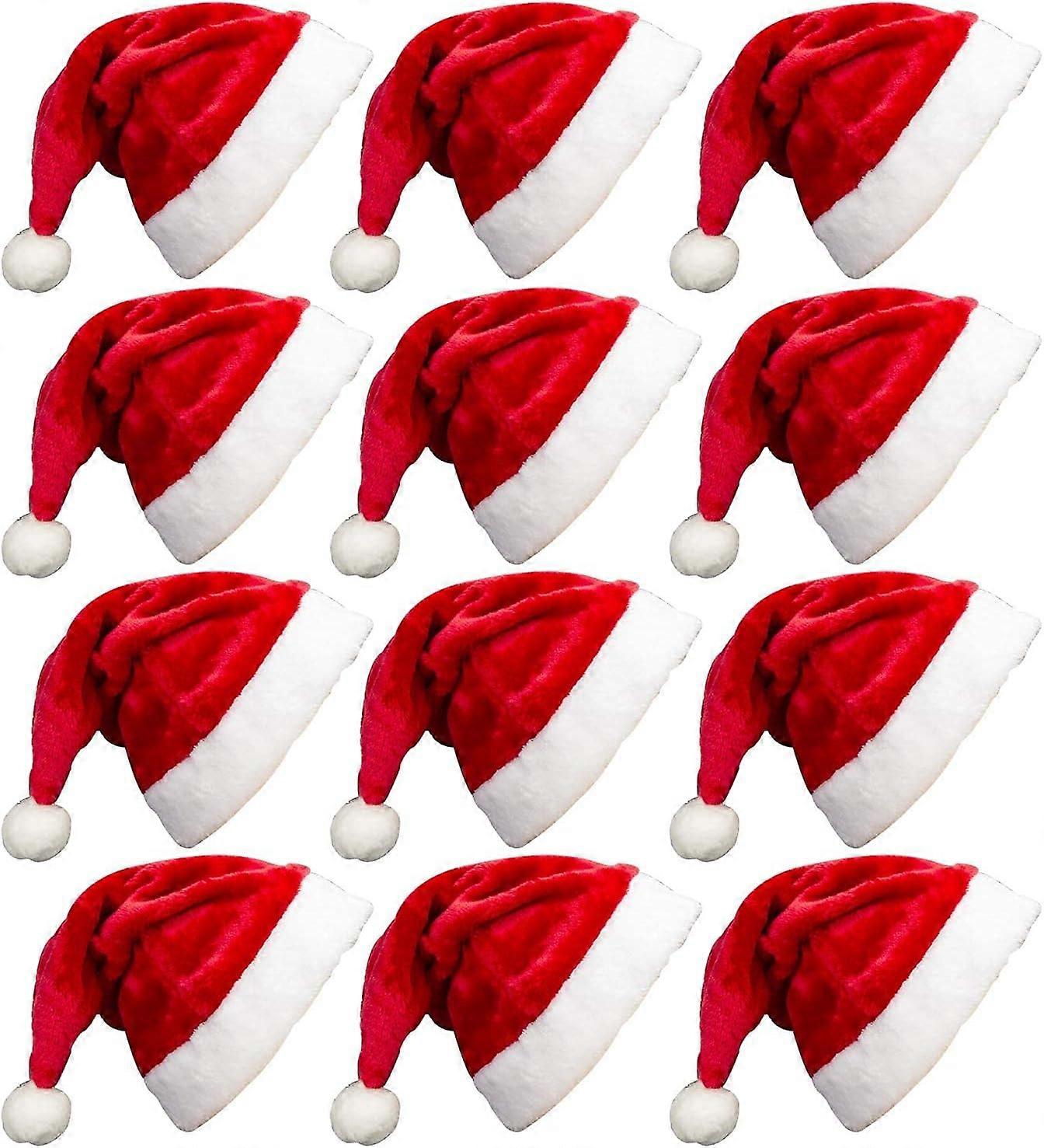 12 Pack Plush Santa Christmas Hats for Kids Children Teenagers & Adults Small Head, Red Plush Xmas Hats with White Cuffs for Christmas Holiday