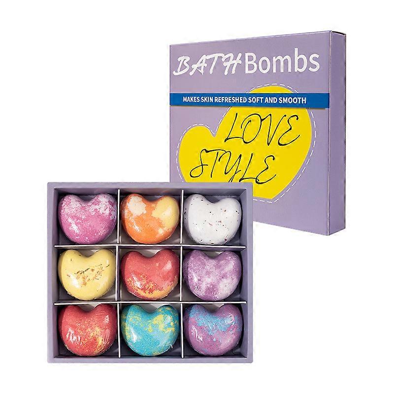 40g*9 Heart-Shaped Bath Salt Balls (Purple Box) 12-Pack Fried Bath Salt Balls, Dried Flower Essential Oil Bath Balls, Exfoliating Bath Salts, Activate