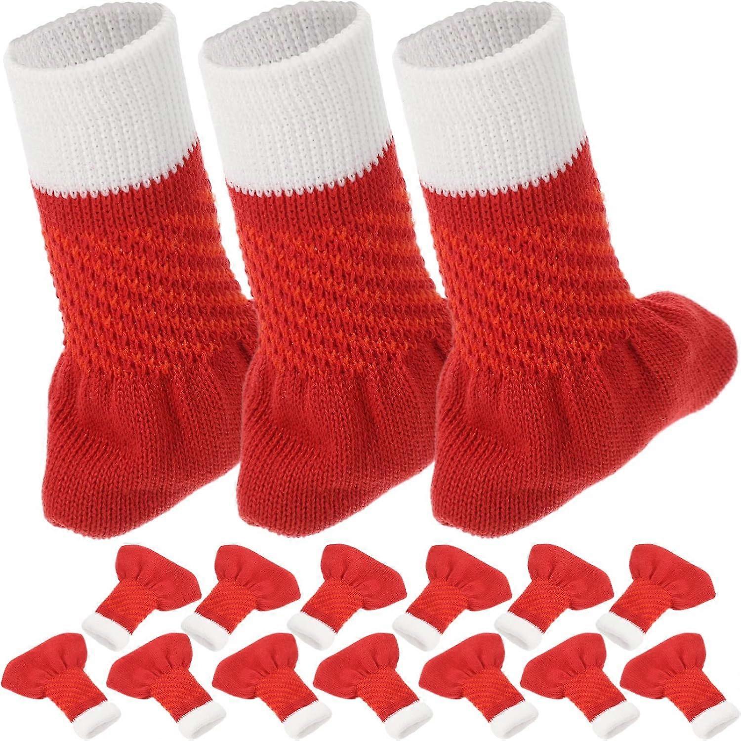 Table Chair Cover 16pcs Chair Leg Floor Protectors Christmas Table Leg Covers Chair Leg Caps Furniture Leg Knitted Socks Covers (Red) Holiday Chair Fe