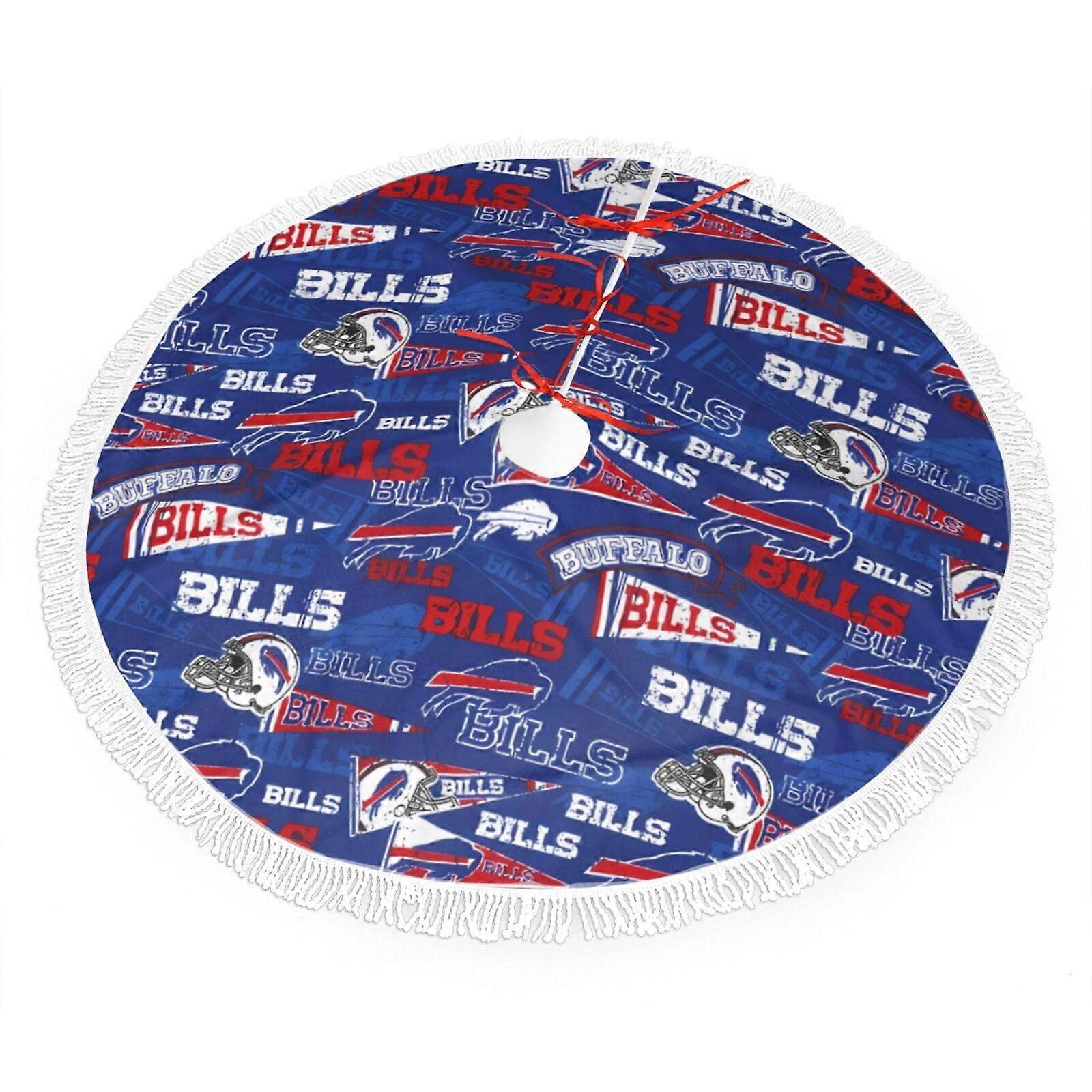 Bills Christmas Fringe Edge Plush Tree Skirt, 30" 36" 48", Bright Colors, Easy Install, Best Gift for Sports Fans