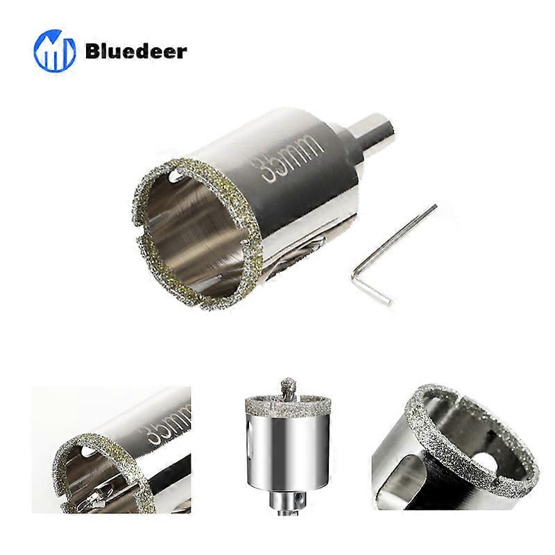 <p> <p>Superior Quality: Our glass hole saw with a positioning pilot drill is made of high-quality diamond, with a solid hardened steel body. The surface is finished with a nickel-plated coating, ensuring high hardness, rust resistance, corrosion resistance, sturdiness, and durability.</p> <p>Precise Positioning Pilot Design: Each tile hole saw is designed with a removable positioning pilot drill. The pilot drill's cutting head is also diamond-coated, making it sharper and more durable. This effectively fixes the hole saw's drilling position for quick hole cutting.</p> <p>Dimensions: Cutting diameter: 35 mm, cutting depth: 30 mm, overall length: 70 mm, triangular shank diameter.</p> 9.5 mm.</p> <p>Sharp and clean holes: These diamond drill bits with a thicker diamond coating make the groove edge sharper, allowing them to cut precise, flat-bottomed holes without chipping on smooth surfaces such as ceramic tiles, glass, marble, granite, and terrazzo. (Cutting depth up to 30 mm)</p> <p>Easy to use: The operation is simple, requiring no special guiding tools. Use the tile hole saw with the positioning bit to locate the hole, remove the positioning bit after placement, and then cut the hole directly with the tile hole saw. Note: During the cutting process, remember to add water or coolant to prolong the life of the hole saw.</p></p>