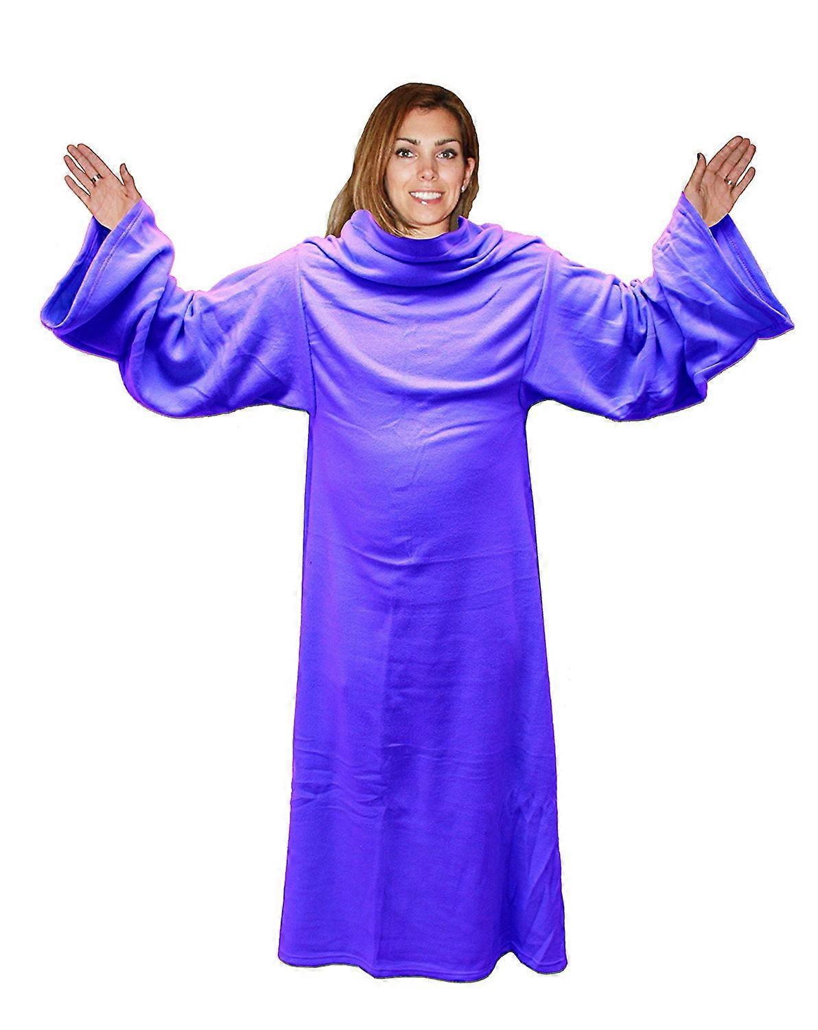 Soft Fleece Wearable Blanket with Sleeves - Plush Cozy Warmth & Comfort - Machine Washable, Lightweight Throw Wrap TV Blanket (Purple)