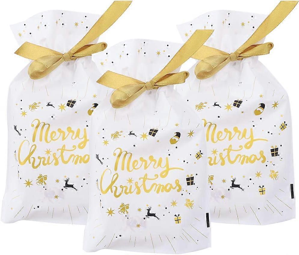 Christmas Drawstring, 50 Pieces Red Reindeer Holiday Christmas Gift Candy Bag Plastic Christmas Gift Bags for Happy Wedding Anniversary (Gold-2)
