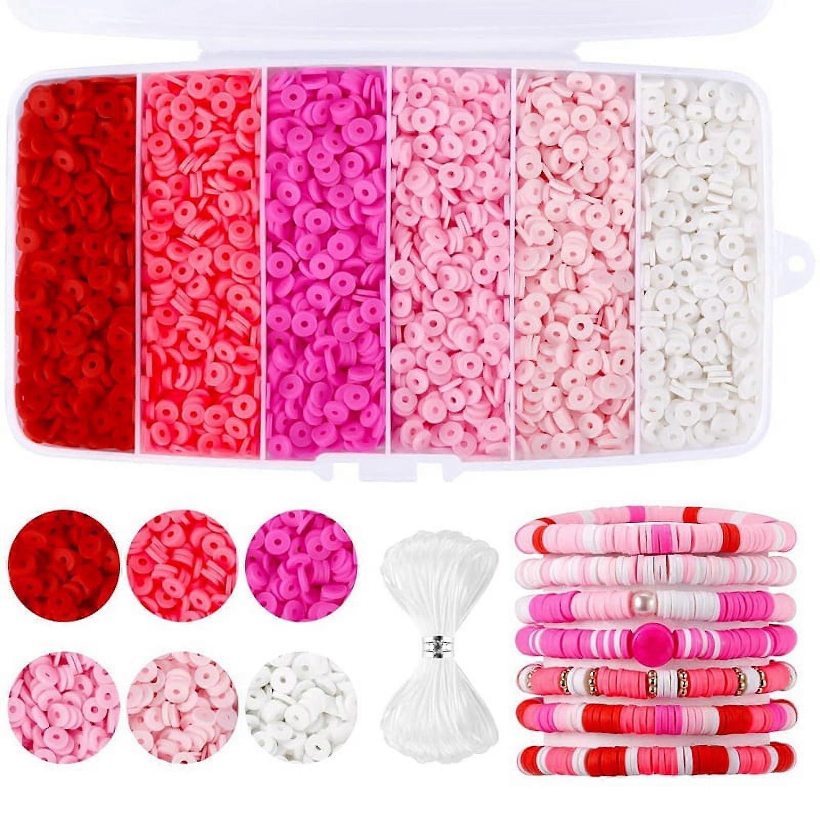 6000 Pcs Clay Beads for Bracelets Making,Polymer Beads, Flat Round Disc Jewelry Making 6mm,Pink