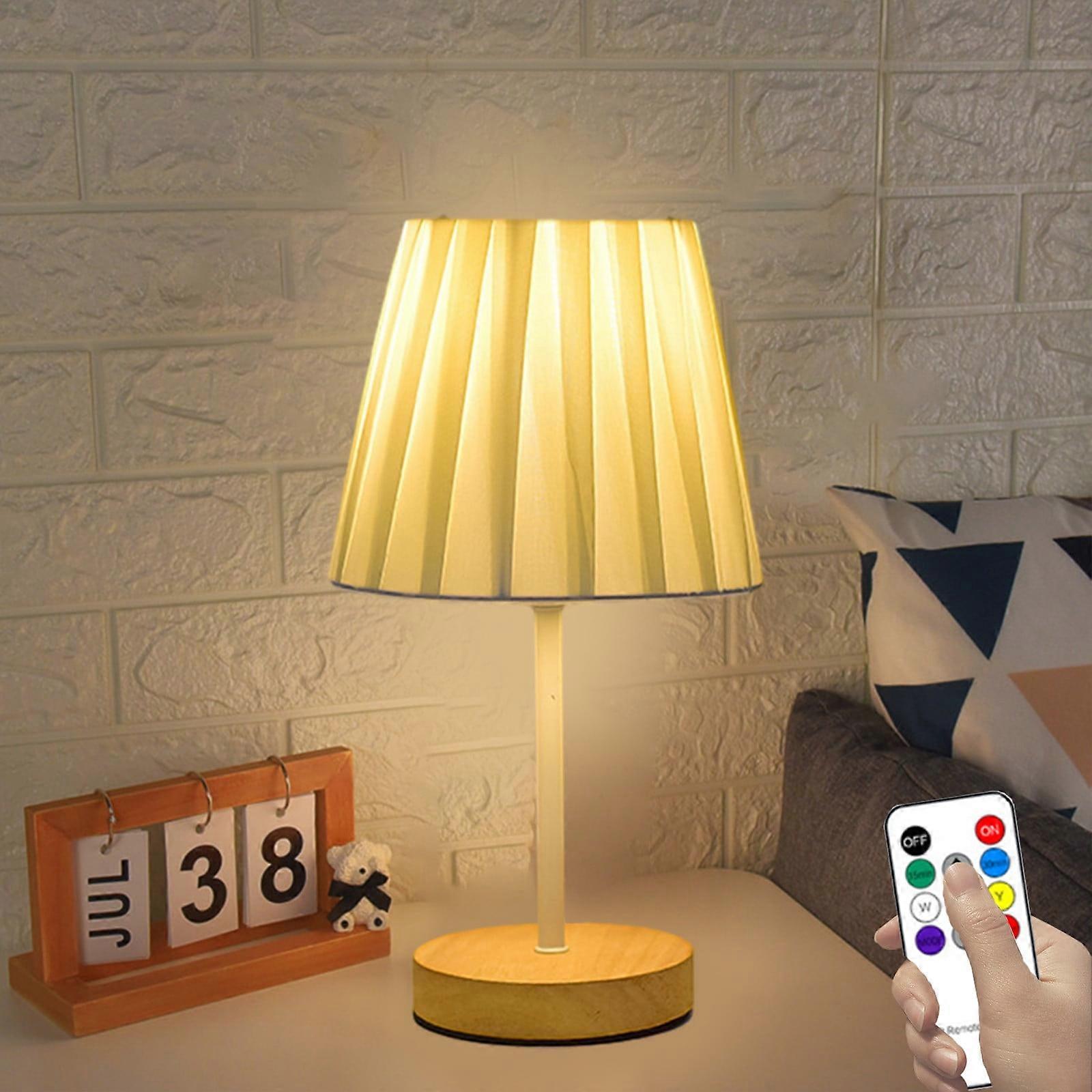 Ikohbadg Stable LED Solid Wood Desk Lamp with Fabric Shade, Warm Light for Home, Study or Nightstand, Compatible with US Plugs
