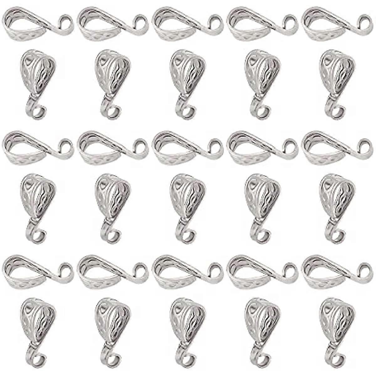 100pcs 15mm Teardrop Bail Beads Stainless Steel Hanger Links for Dangle Jewelry Making, Stainless Steel Color
