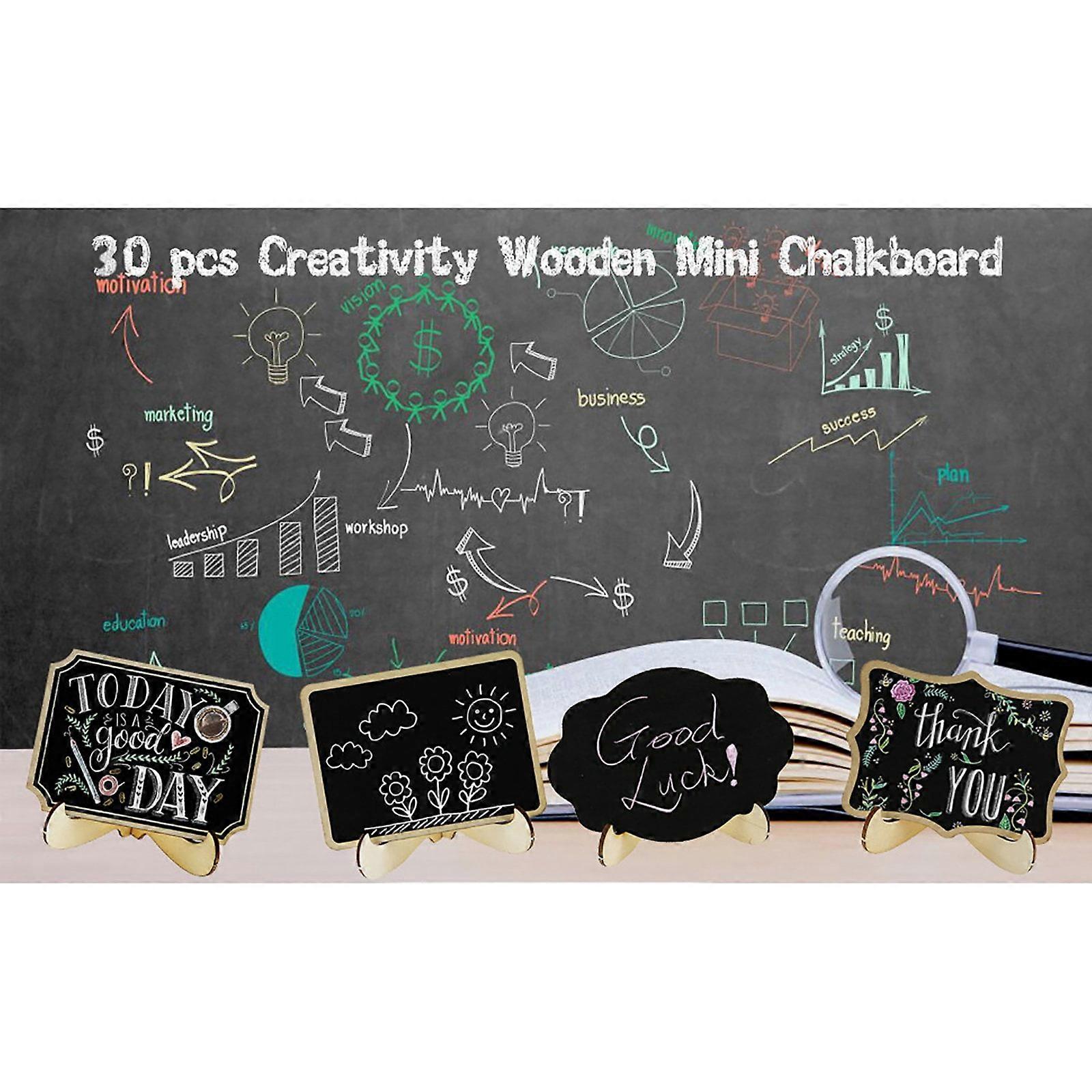 30 Pcs Reusable Mini Chalkboard Signs, 3 Designs, compatible with Wooden Frame & 2 Chalk Markers, for Food Labels, Table Numbers, Weddings, Parties