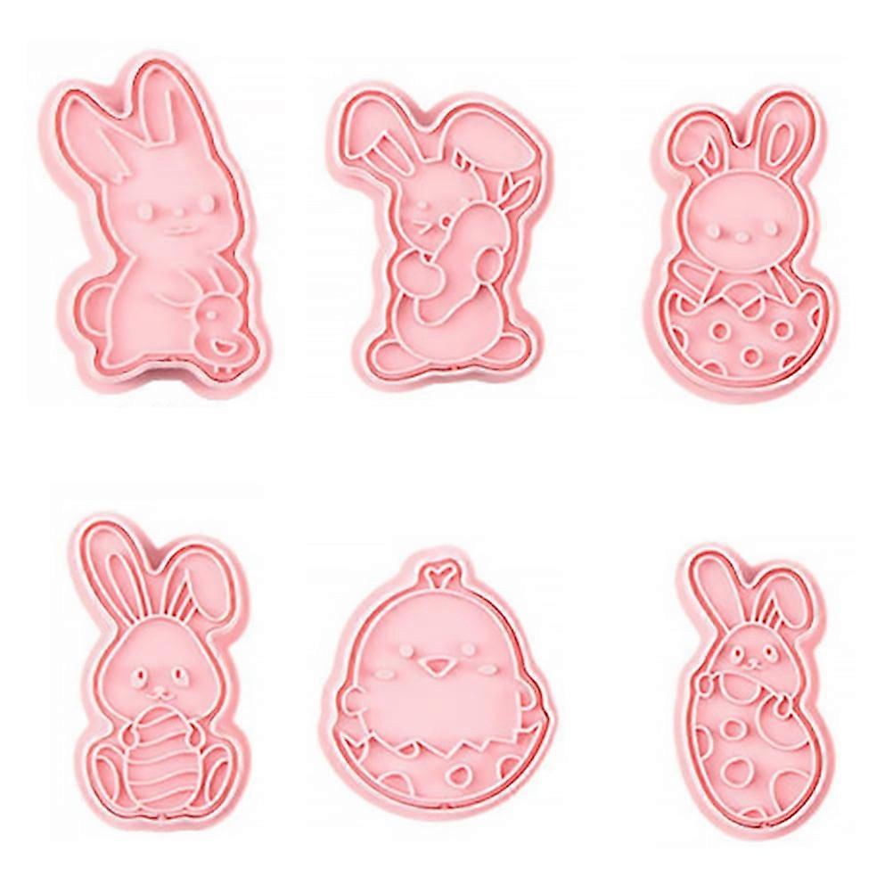 Animal Crackers 6 Pcs Baking Mold Cookie Bunny Cutters Push Type Pink Pp Child