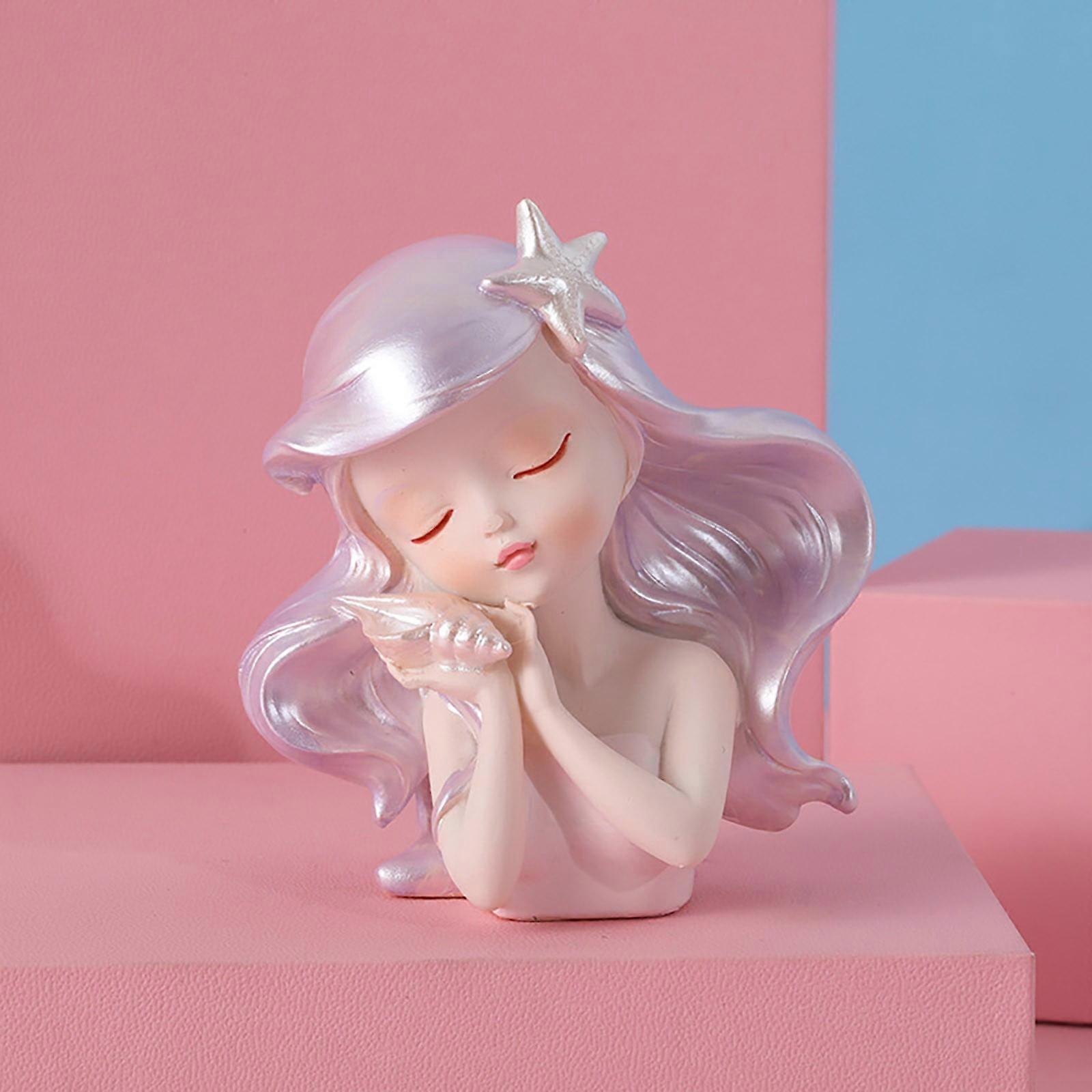 WinysinMermaid Bathroom Decor, 3.54" High Resin Mermaid Girl Statue, compatible with Mediterranean Princess Room Shelf Decor, Angel Home Craft