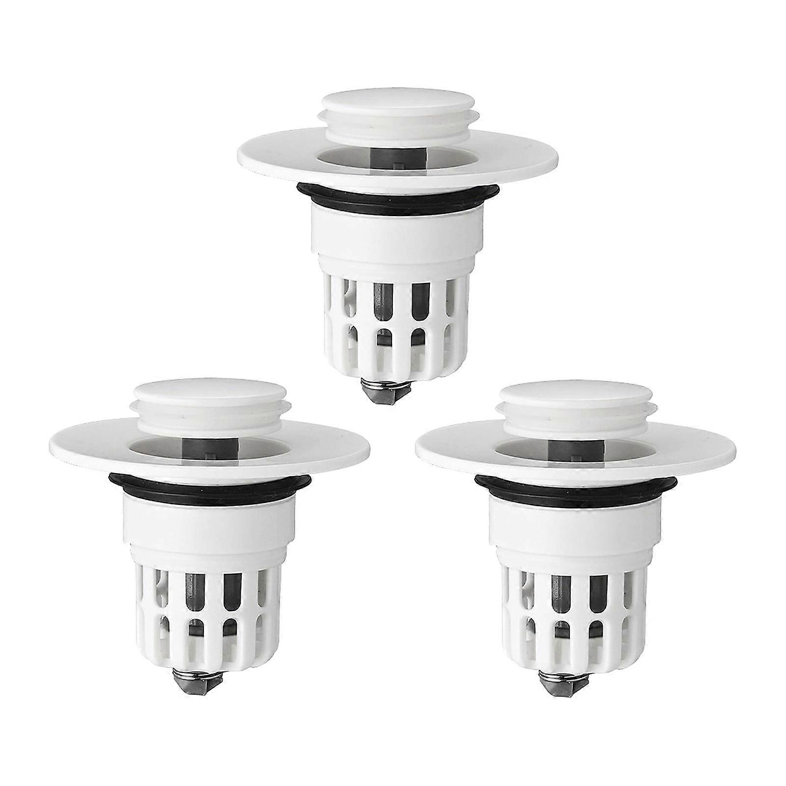 3X Wash Basin Stoppers, Plastic Drain Plug Filter Compatible with Bathroom Sink & Kitchen Basin - Universal Design
