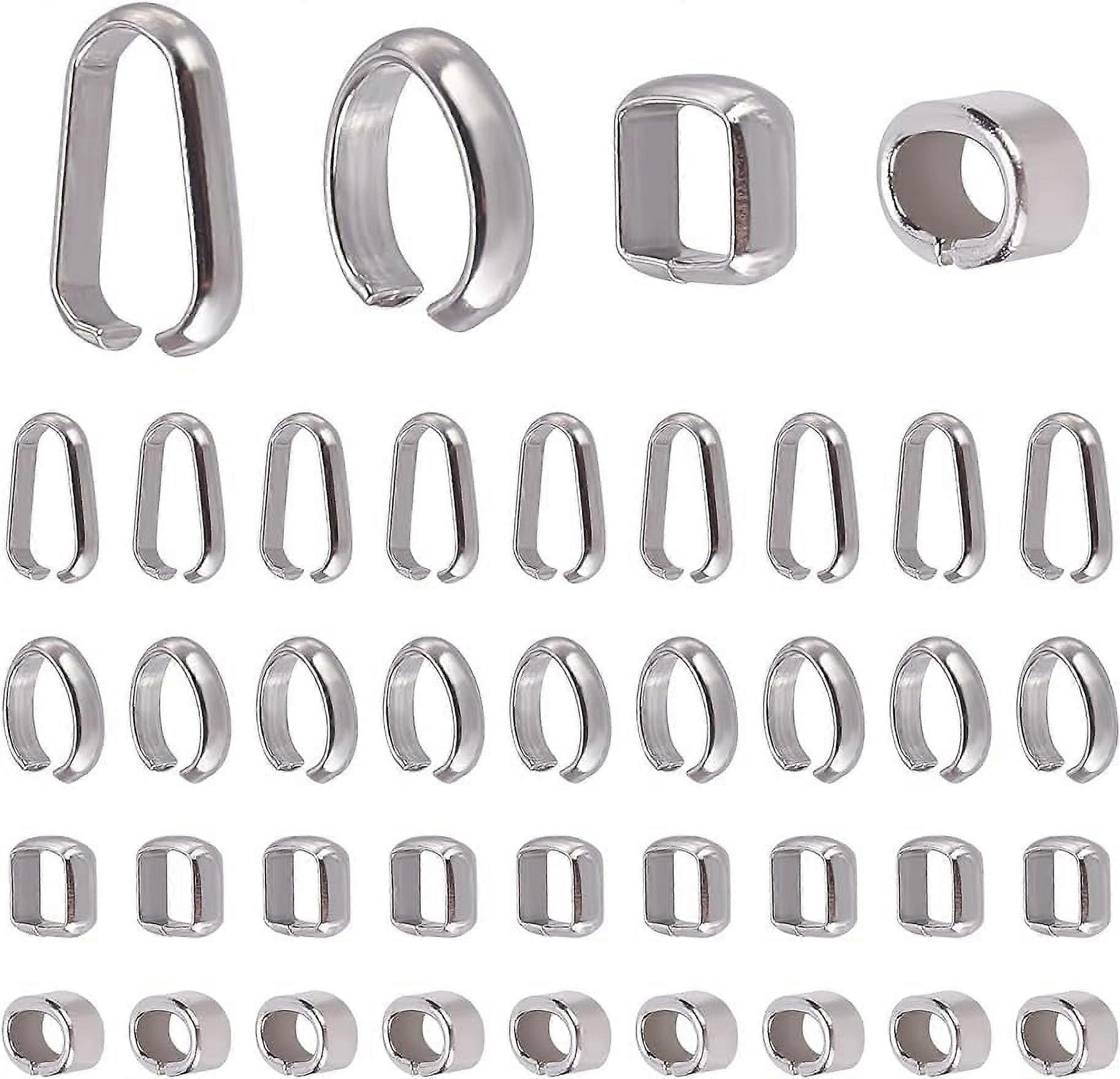 200pcs 4 Styles Stainless Steel Pinch Bail Clasp Snap Clip Bail Hooks Necklace Clasps Closures Square Oval Bead Pendant Connector Ring for Dangle Jewelry Necklace DIY Craft Various sizes: You will receive 200pcs connector clasps in 4 sizes: about 2.5/3mm(0.1/0.12 inch) thick, inner diameter: square shape - 0.20inch(5mm), oval shape - 0.35x0.30 inch(9x7.5mm); 0.22x0.12 inch(5.5x3mm); 0.41x0.26 inch(10.5x6.5mm), 50pcs each size. Strong stainless steel: High quality stainless steel, featured with robust material and comfortable wear, will feel great touch, sturdy for use in daily life, no worry about losing pendants, can serve you for a long time. Quick link connector: Use these snap clips to turn drilled beads or pendants into beautiful pendants, fix and secure your beads and pendants, the loop is wide enough to slide through strings, cords, or chains to be a pendant. Easy to Use: open the bails with pliers and apply a small amount of pressure to close the bails and push the prongs into the pre-drilled holes in the pendant. The width can be adjusted by squeezing the loop. Wide applications: Suitable for most necklace, will work great for DIY your special & unique jewelry, widely used in attaching beads, crystals, gemstones and some other pendants to necklaces or bracelets.