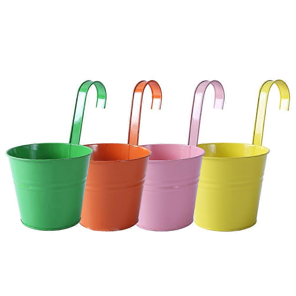 4PCS Iron Balcony Railing Flower Pots, Hanging with Hook & Drain Hole - Green, , Yellow, Orange
