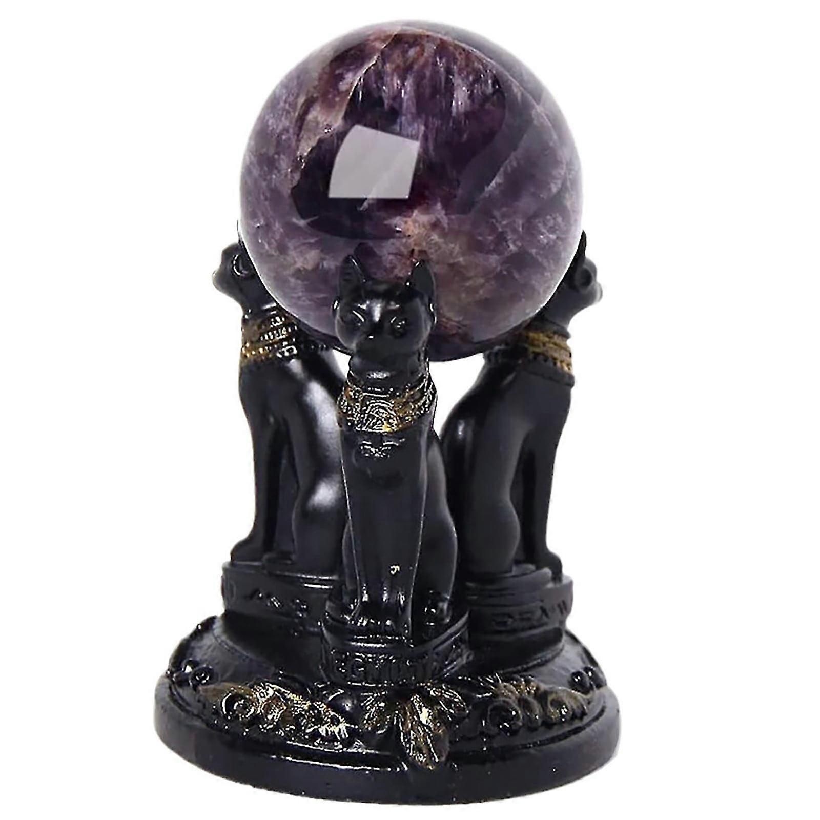 Yakbaofuo Cat Crystal Ball Stand Compatible with 40mm 80mm, Glass Orb Holder Base Statue for Feng Shui, Desktop Decor, Christmas Halloween