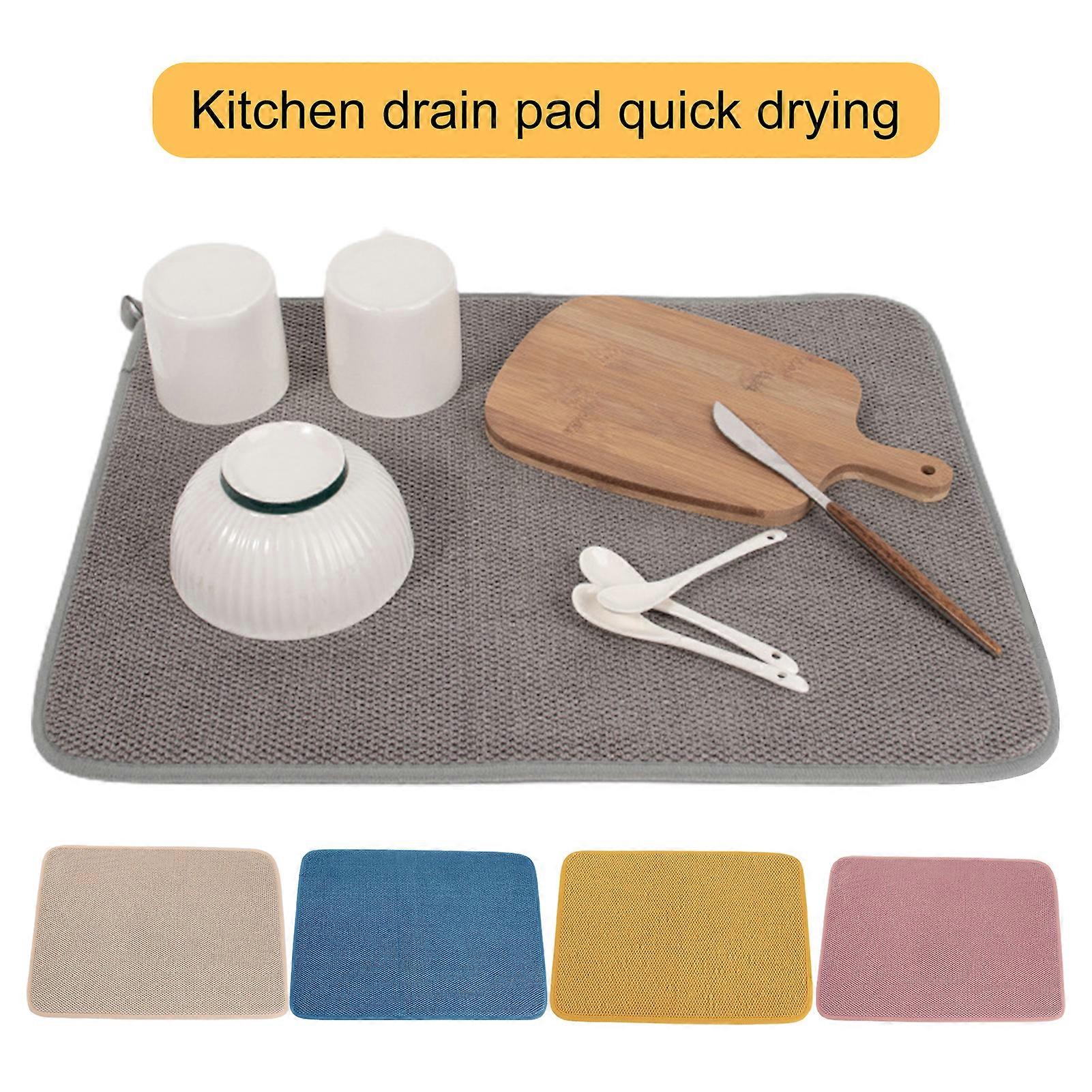 SUSUchens 2Pcs Drying Pad Great Water Absorption Microfiber Quick Drying Easy to Clean Counter Drainer Pads Kitchen Supplies Pink