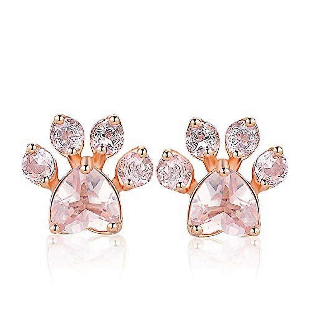 Hypoallergenic Earrings for Women, Dainty Jewelry, Paw Earring, Crystal Pet Cat Dog Pawprint Stud Earrings Jewelry for Puppy Lovers, Rose Gold