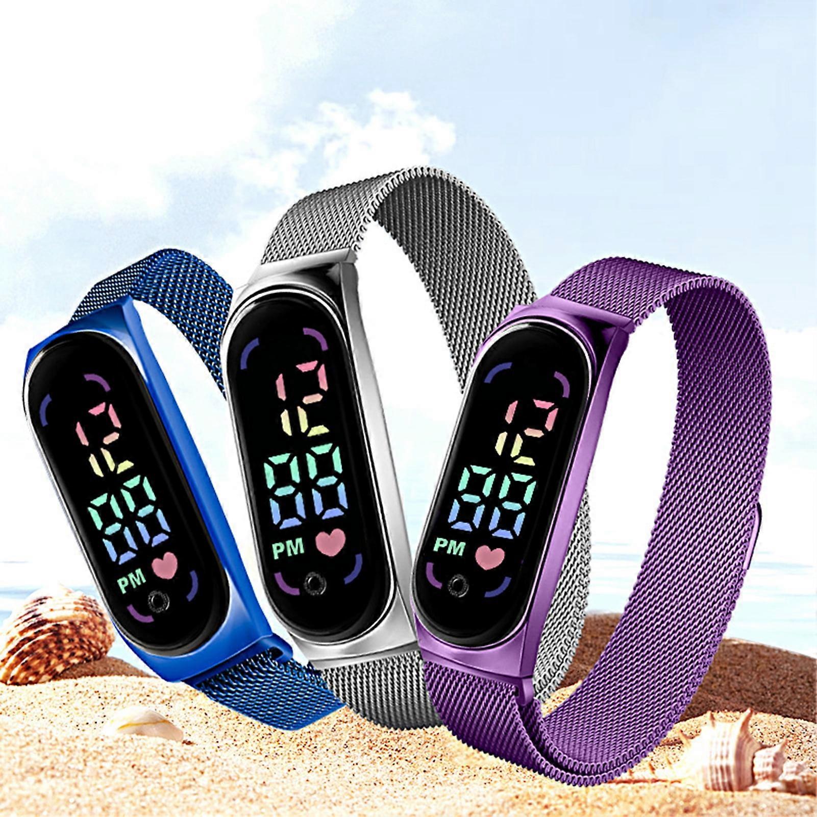 SUSUchens Electronic Watch Magnetic Multifunctional Adjustable LED Screen Waterproof Rectangular Dial Student Watch Daily Wear Silver