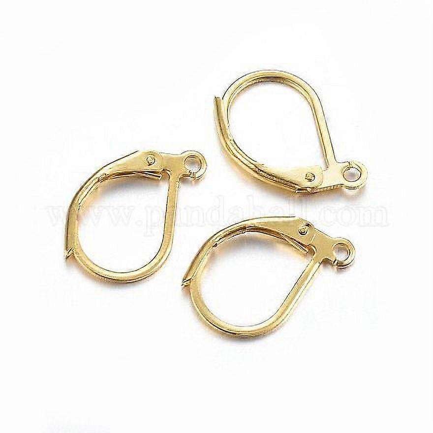 304 Stainless Steel Leverback Earring Findings with Loop Real 24K Gold Plated 15x10x2mm