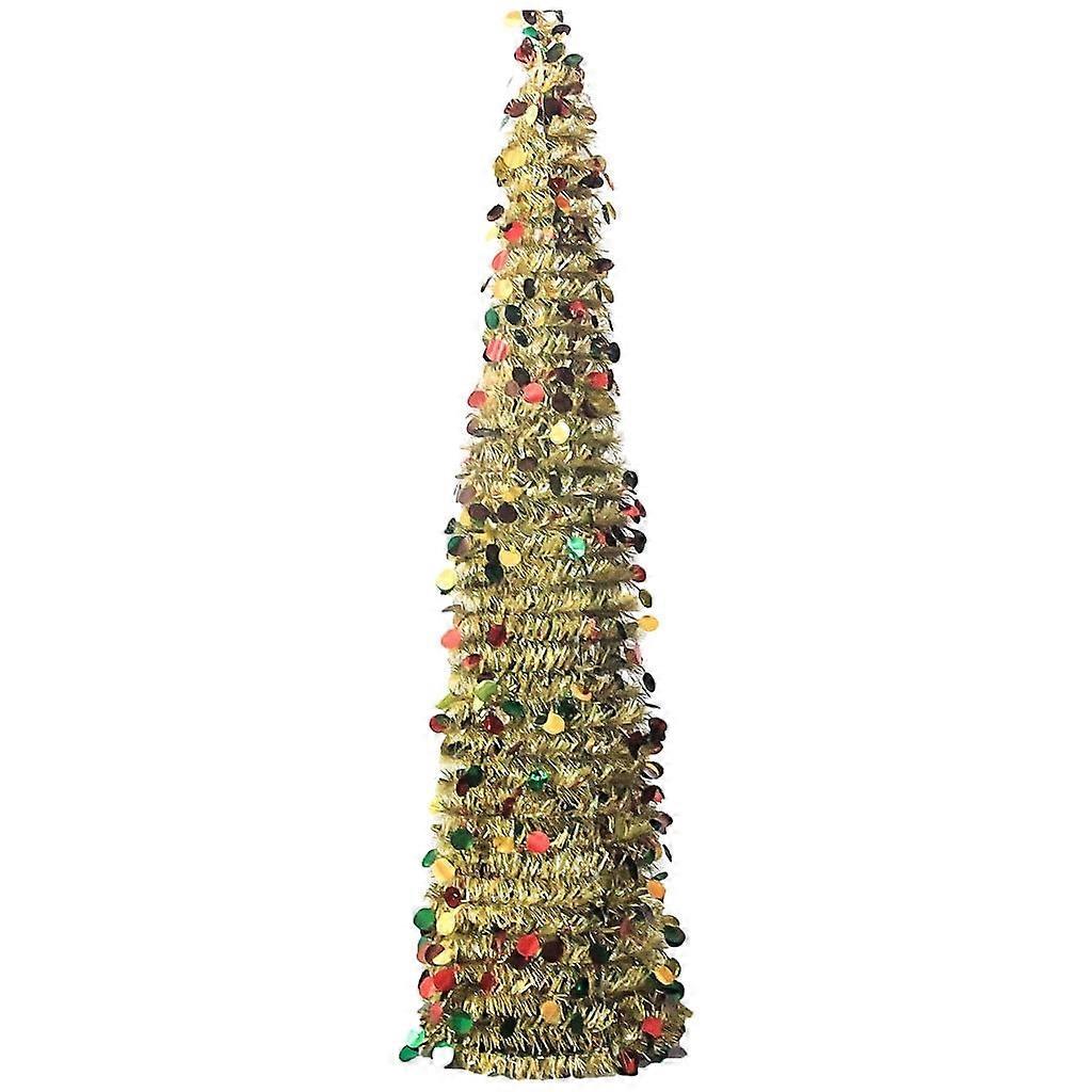 Gorgeous Foldable Artificial Christmas Tree with Stand, Tinsel Pendant Decoration for Holiday - Yellow, 1 Pc
