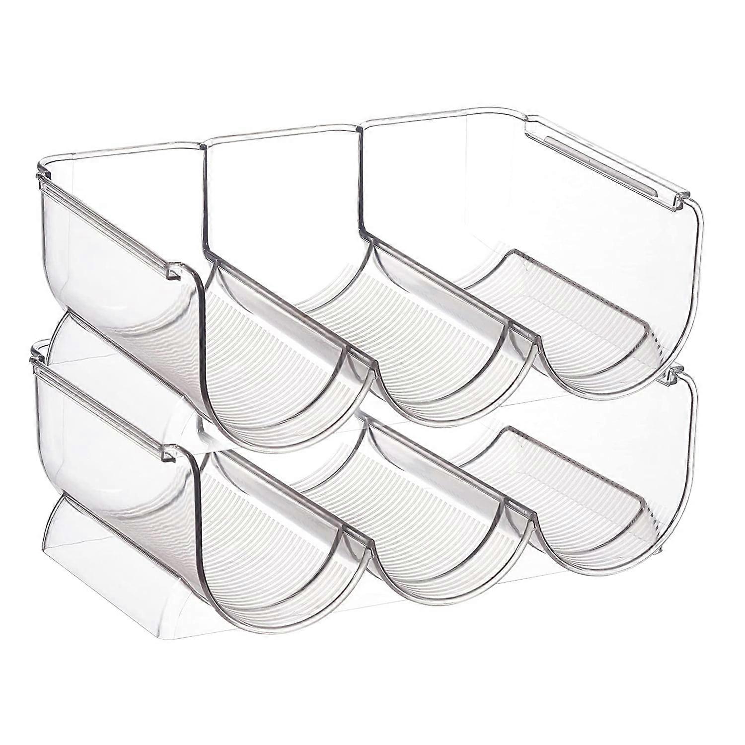 2 Pack Plastic Stackable Wine & Water Bottle Organizer Holders for Kitchen Pantry Refrigerator Countertop Storage Bins