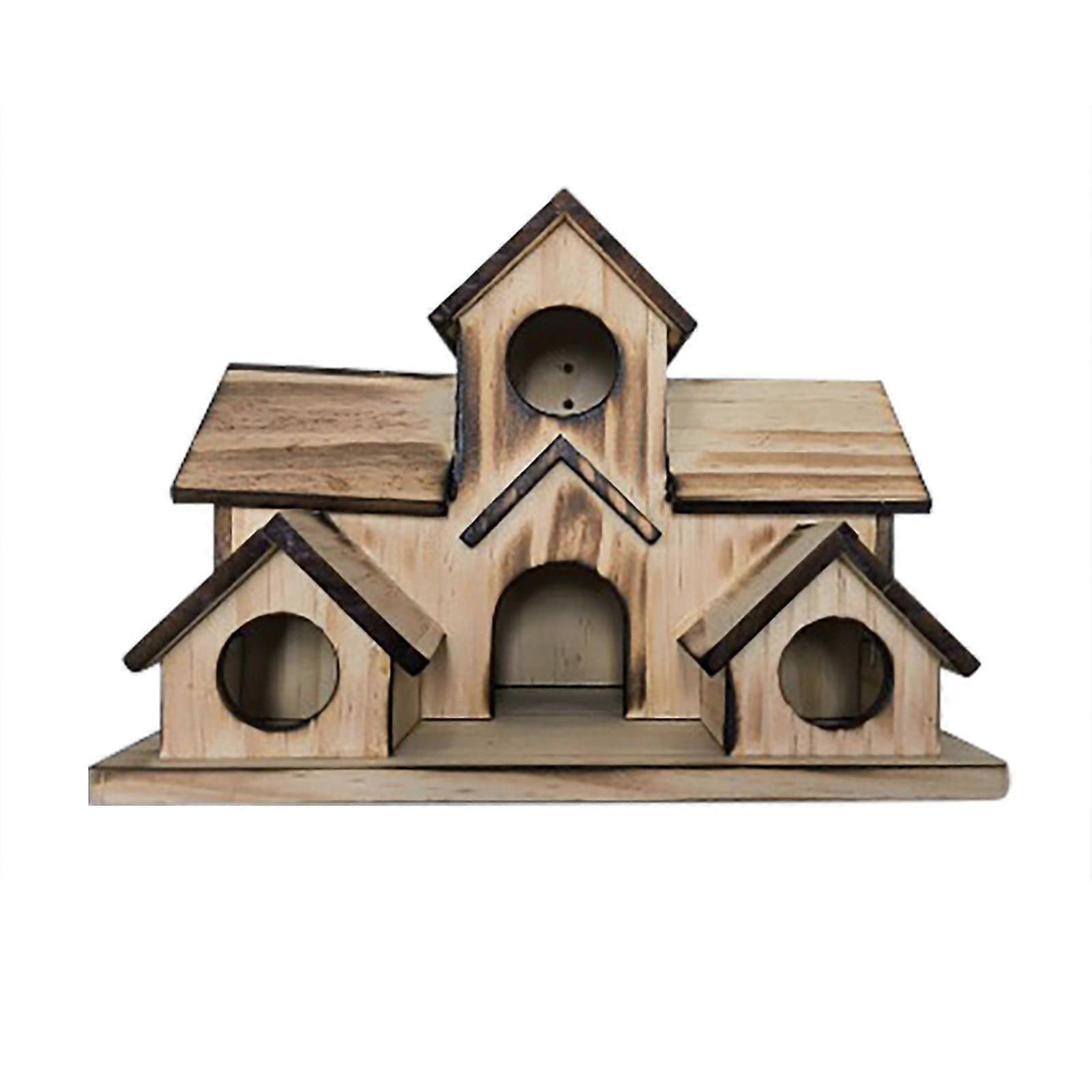 Bird House for Outside, Compatible with Hummingbird, Bluebirds, Finchs, 6-Hole Hanging Nesting Box for Backyard/Courtyard/Patio Decor