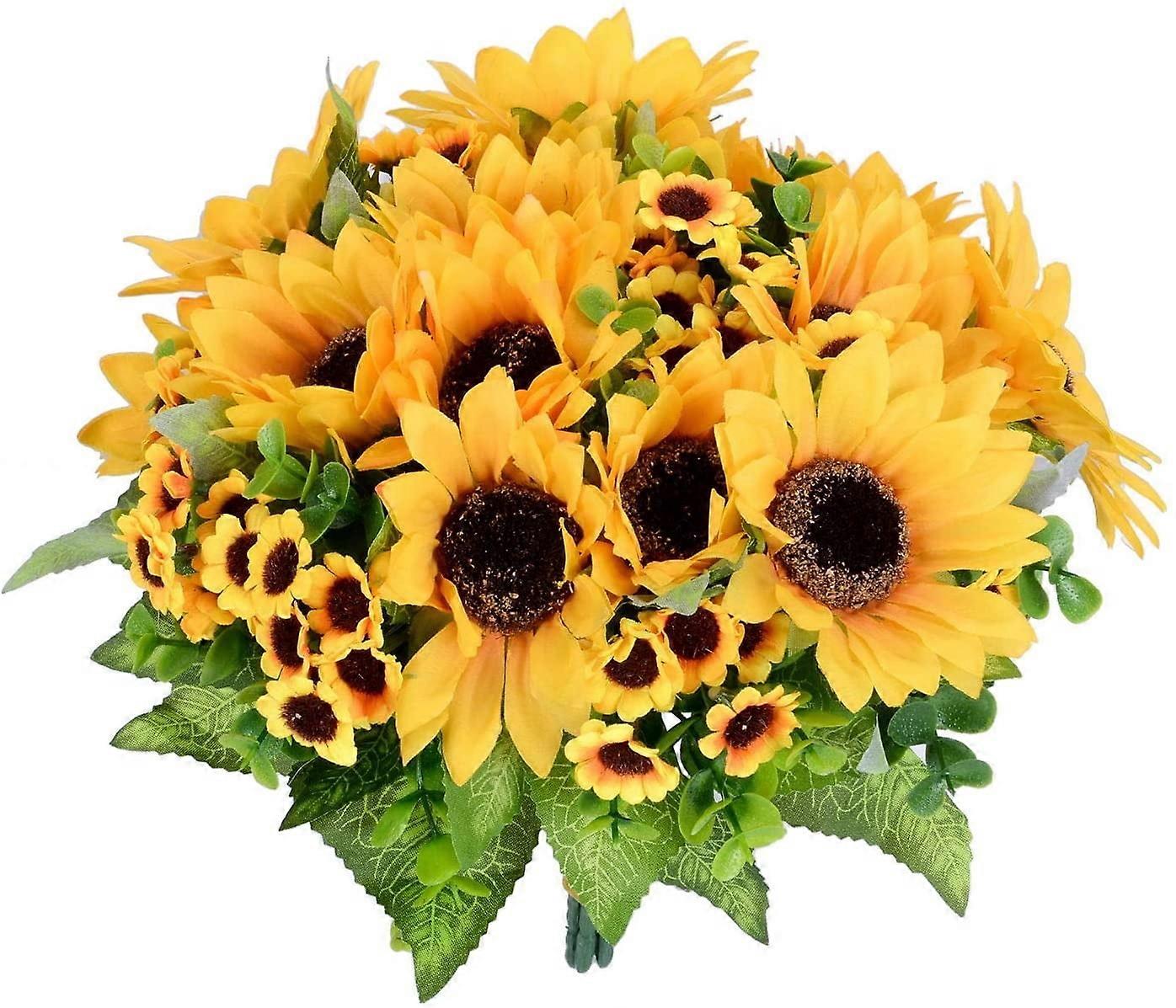 YaFex-goods Artificial Flower Sunflower Bush Bouquet, 2 Bunches Silk Sunflowers Fake Yellow Flowers for Home Decoration Wedding Decor (2 Pack)