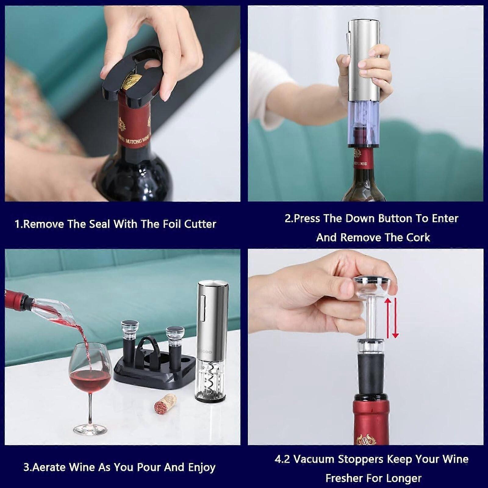Classic Electric Opener, compatible with wine bottles, stainless steel corkscrew, foil cutter, vacuum stopper, pourer - kitchen essentials