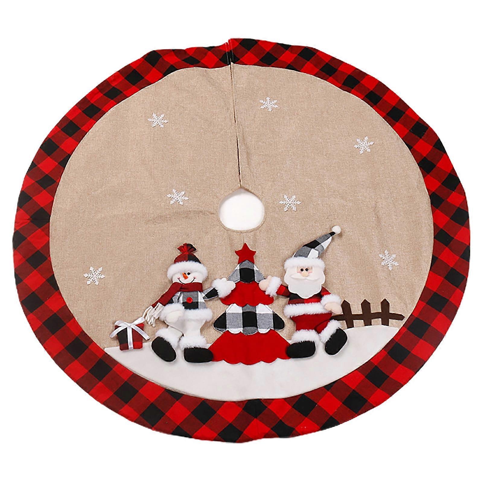 Christmas Tree Skirt Red Black Plaid, Reusable Anti-fade Round Floor Mat with Fastener Tape, Compatible with Xmas Santa Snowman Decor