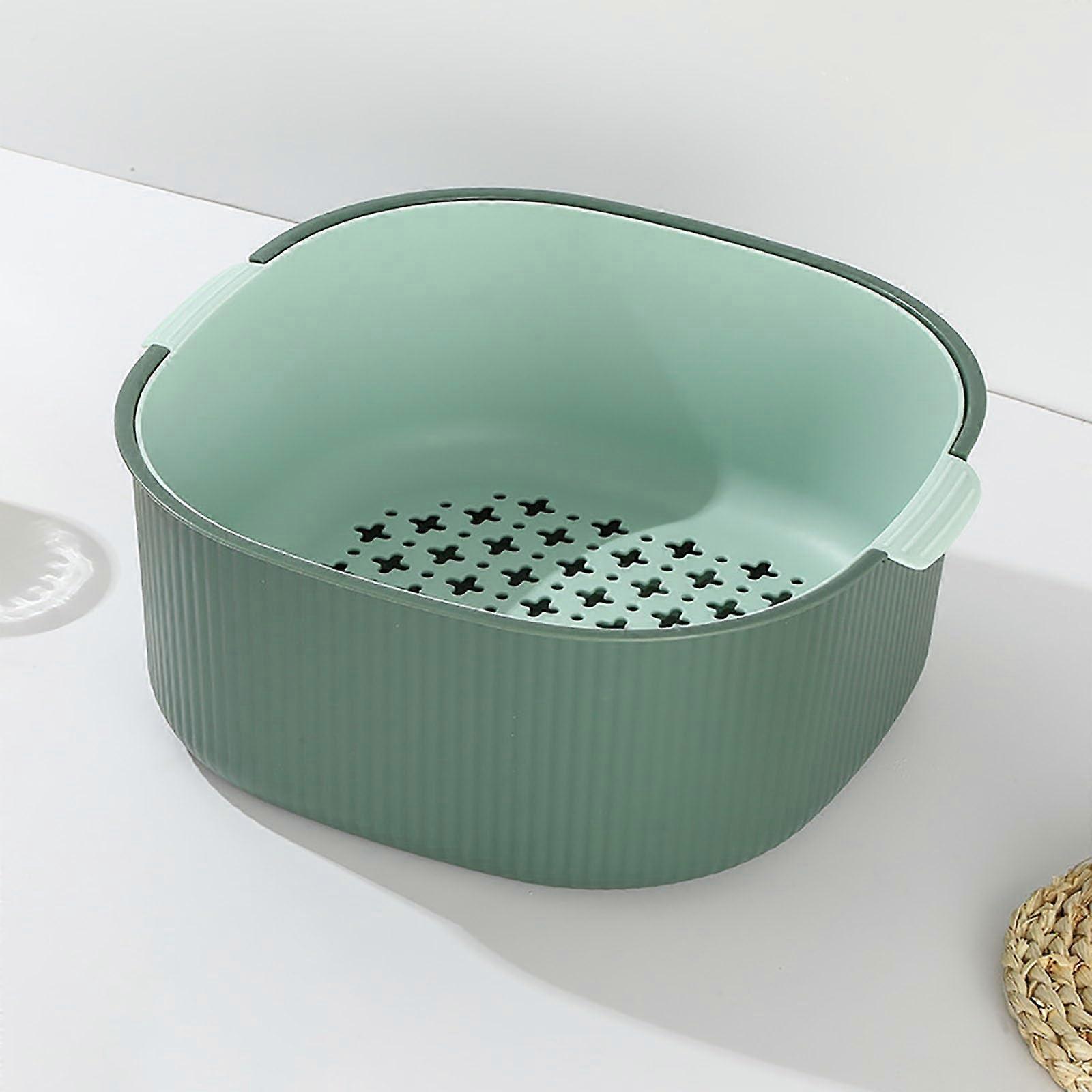 Double Layer Vegetable Water Tray, Vegetable Wash Tray With Water Storage, Oil Drip Tray, NonSlip Base, Green, 10.4x9.6 In