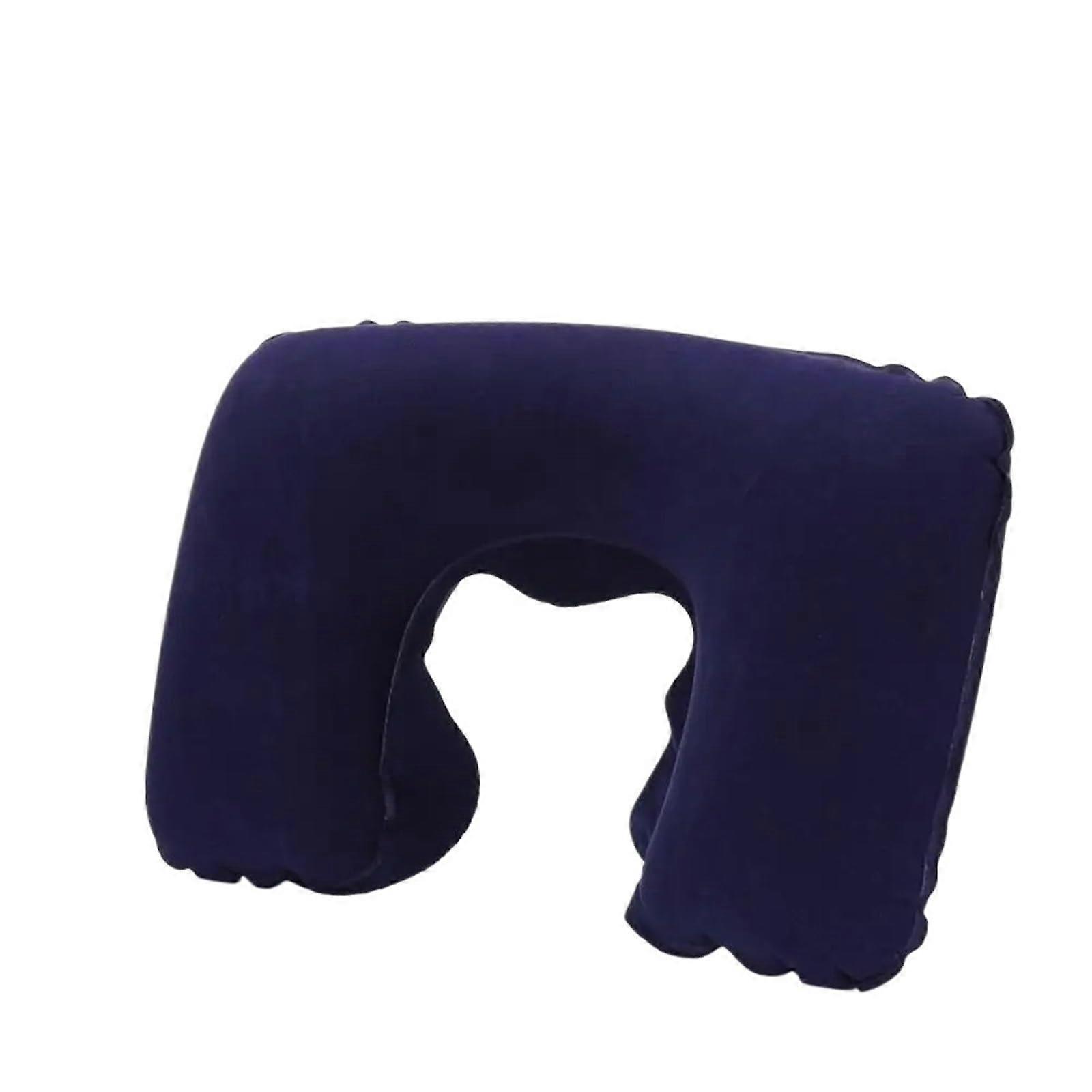 Neck Pillow Inflatable UShaped Travel Pillow With Flocking Plush Fabric Cover, Square Dark Navy Nap Pillow