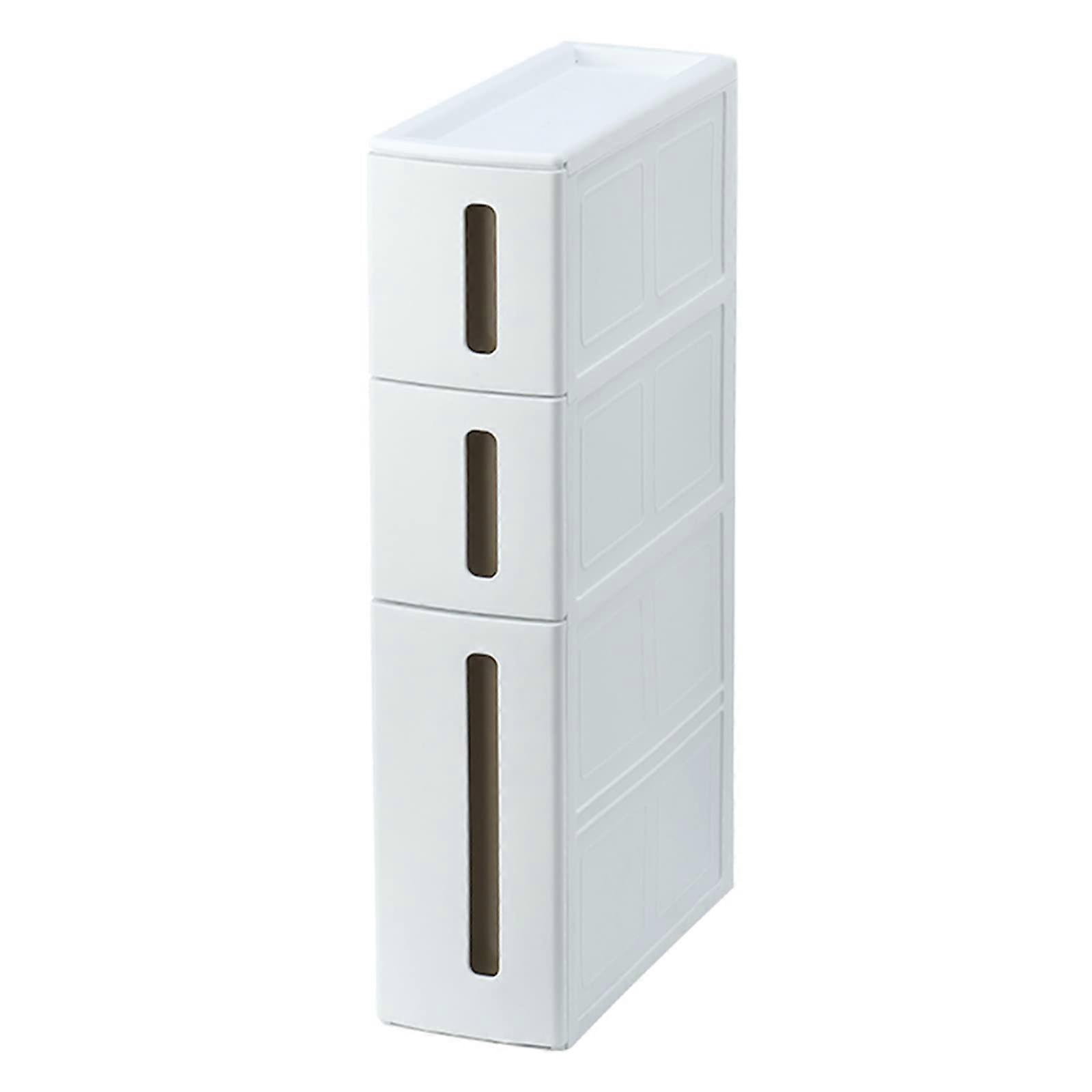 White Small Bathroom Storage Cabinet, 3Tier Skinny Cabinet With Plastic Drawers, 14 cm Wide, For Small Spaces