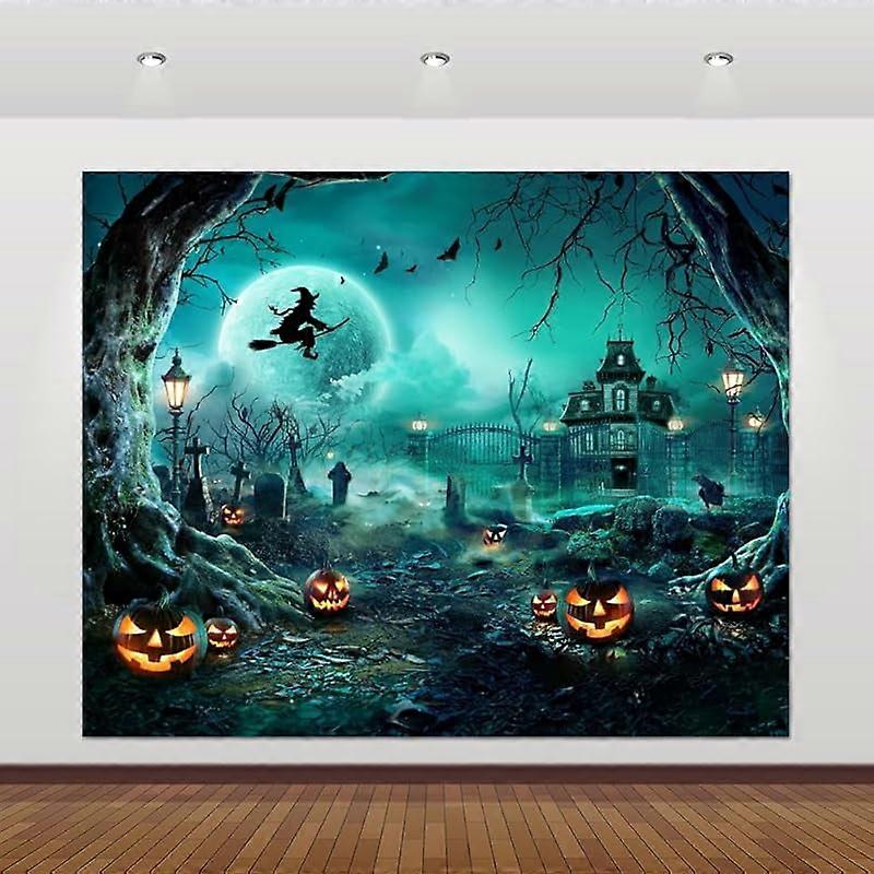 Halloween Backdrop 10x8ft, Scary Cemetery Haunted House Horror Graveyard with Tombstone Pumpkin Moon for Party Photoshoot