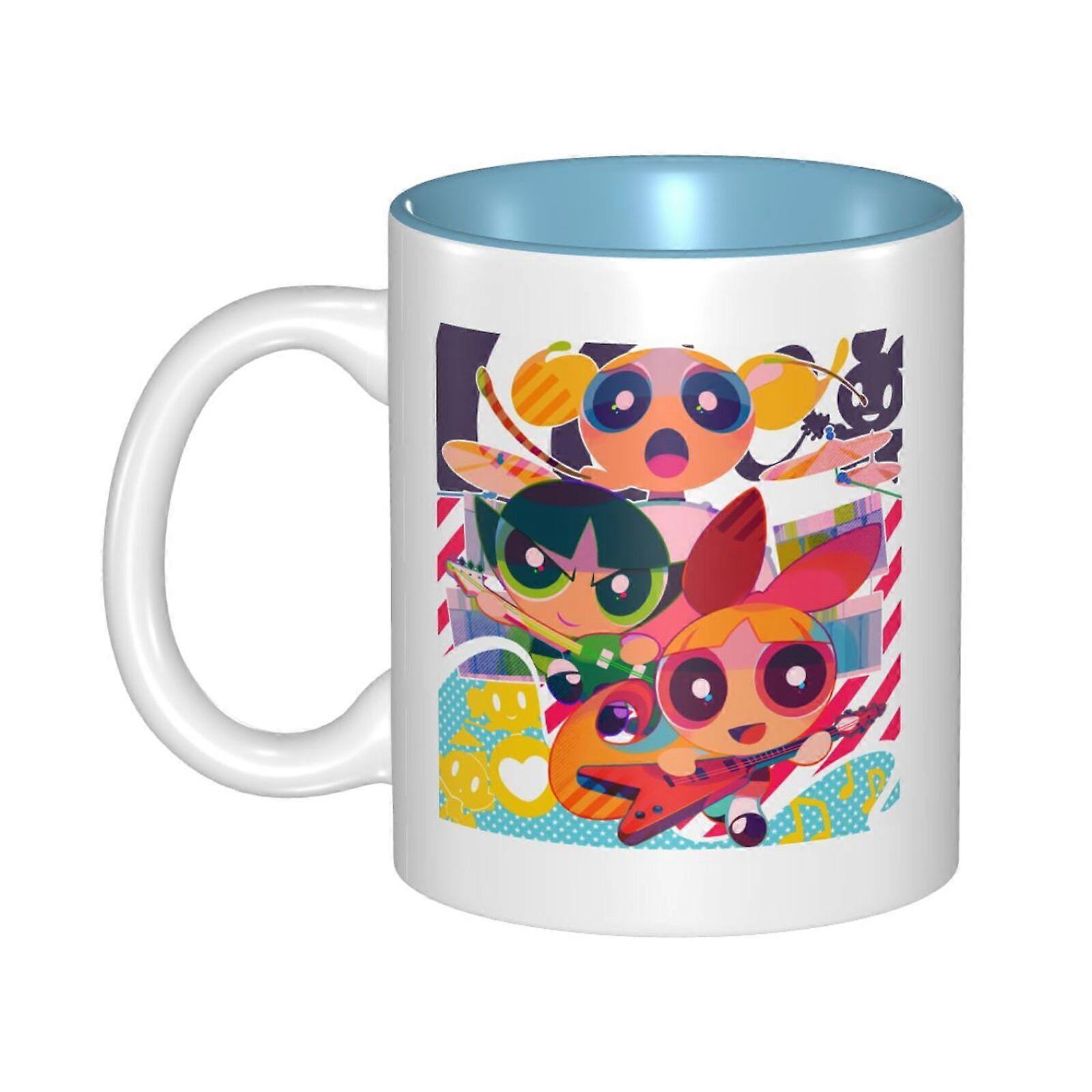 Powerpuff Girls Ceramic Mug 11 Oz Sky Blue, Cute Coffee Cup for Women Men, Compatible with Christmas Holiday, Home Office Decor
